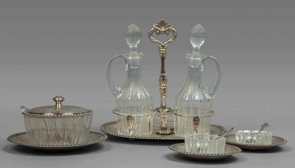 Formaggiera in argento e cristalllo due saliere e oliera (gr.400)
