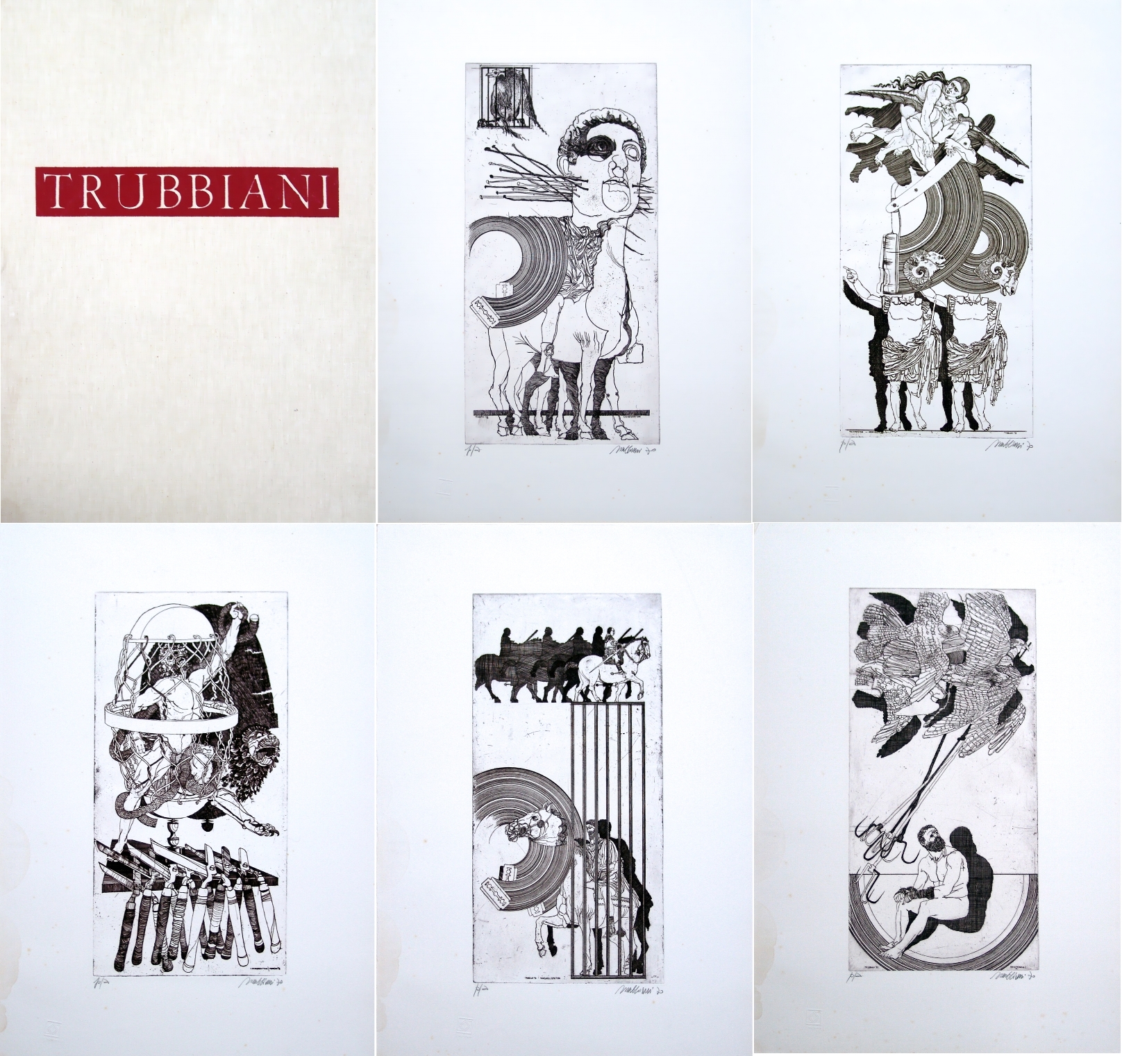 es. p.a., cartella con 5 acqueforti firmate dall’artista, edizione Il Segnapassi di Pesaro