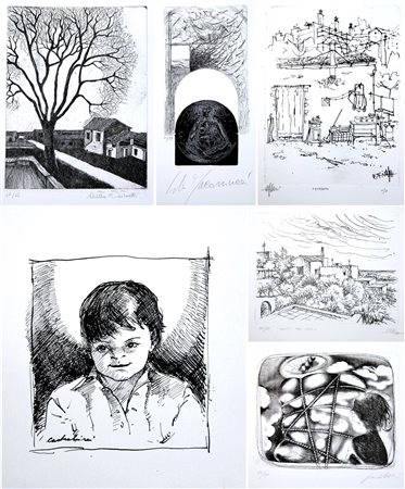 es. 85/99, cartella con 5 acqueforti firmate dagli artisti e un disegno di Sergio Cartechini, edizione A.V.I.S. di Recanati