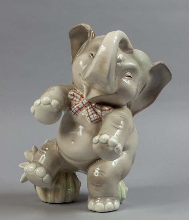 Elefantino seduto su cactus scultura in ceramica policroma f.ta alla base Lenci 1940 ca. (rotture ad un orecchio e piccole sbeccature)