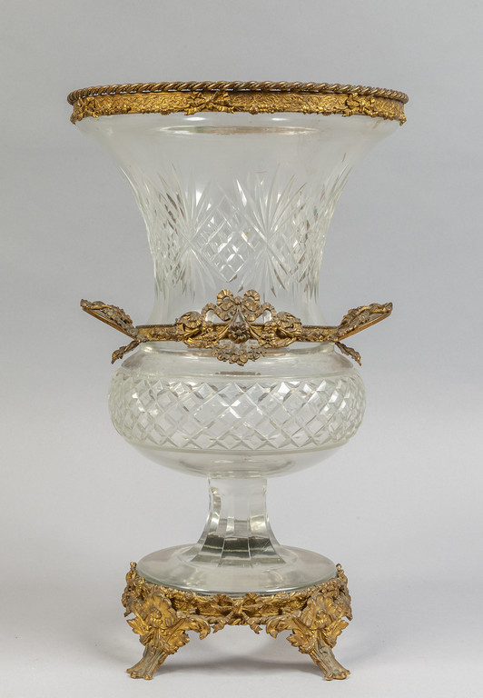 Grande vaso in cristallo molato montato con bronzi finemente cesellati Francia fine sec.XIX