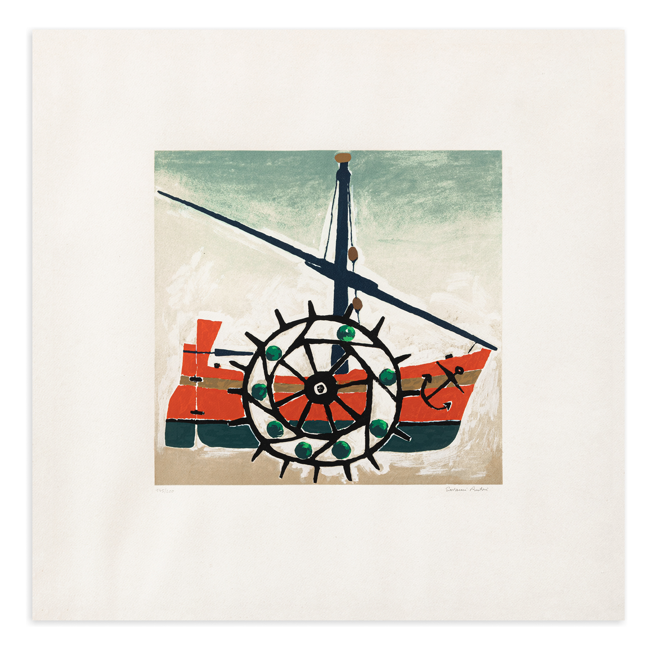 Firma e numerazione (Esemplare 145/200) a matita al fronte