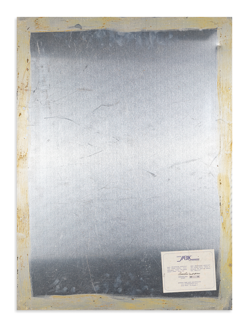Etichetta delle Edizioni Jabik (MI) al retro con firma e numerazione (Esemplare 96/500) al retro