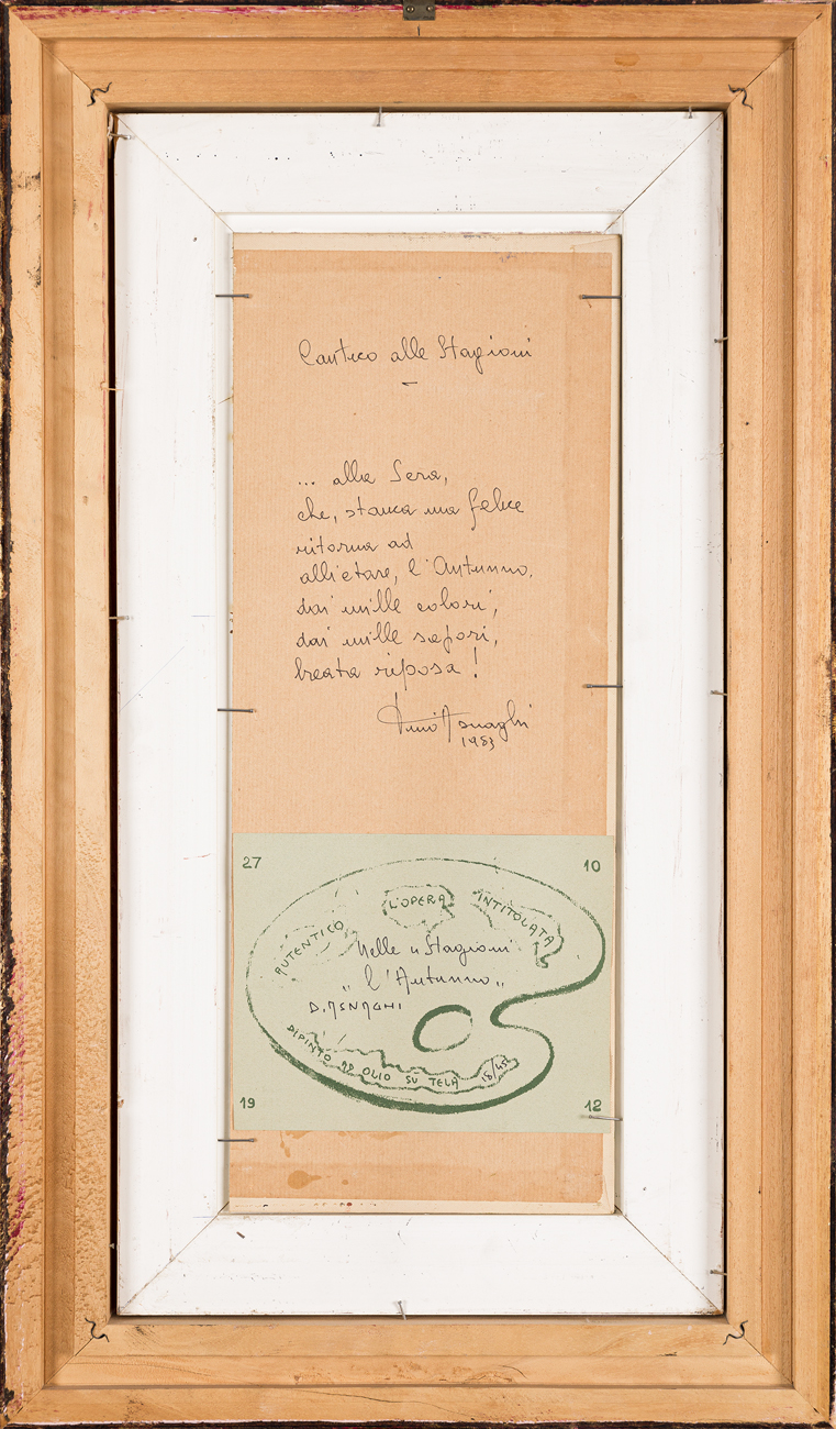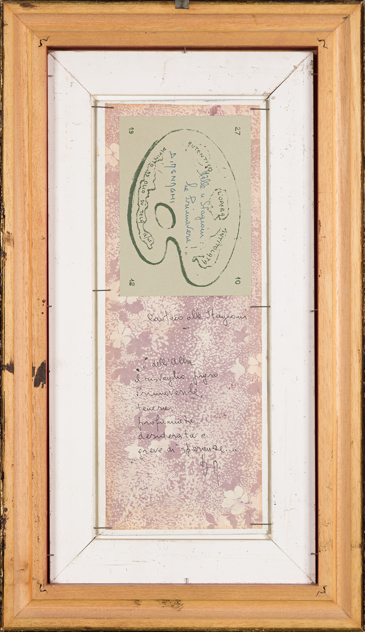 Firma, titolo, datazione, dichiarazione di autenticità e poesia dell'Artista al retro
