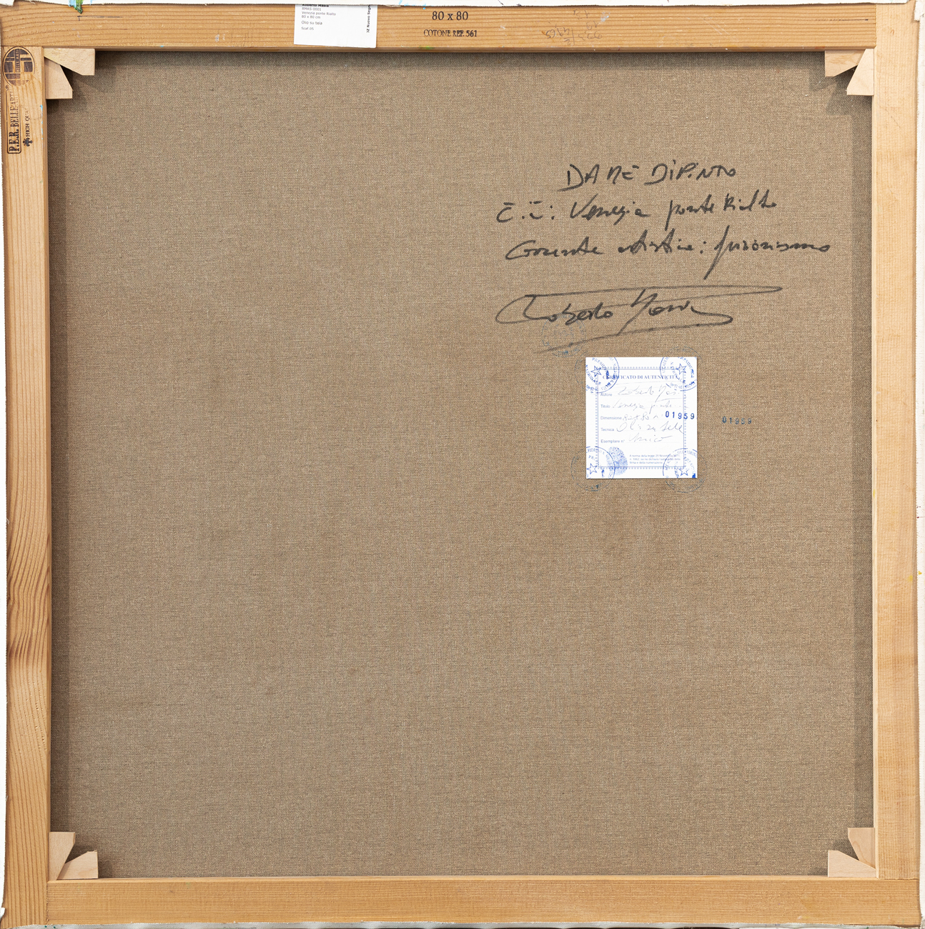 Firma, etichetta e timbri dell'Artista al retro