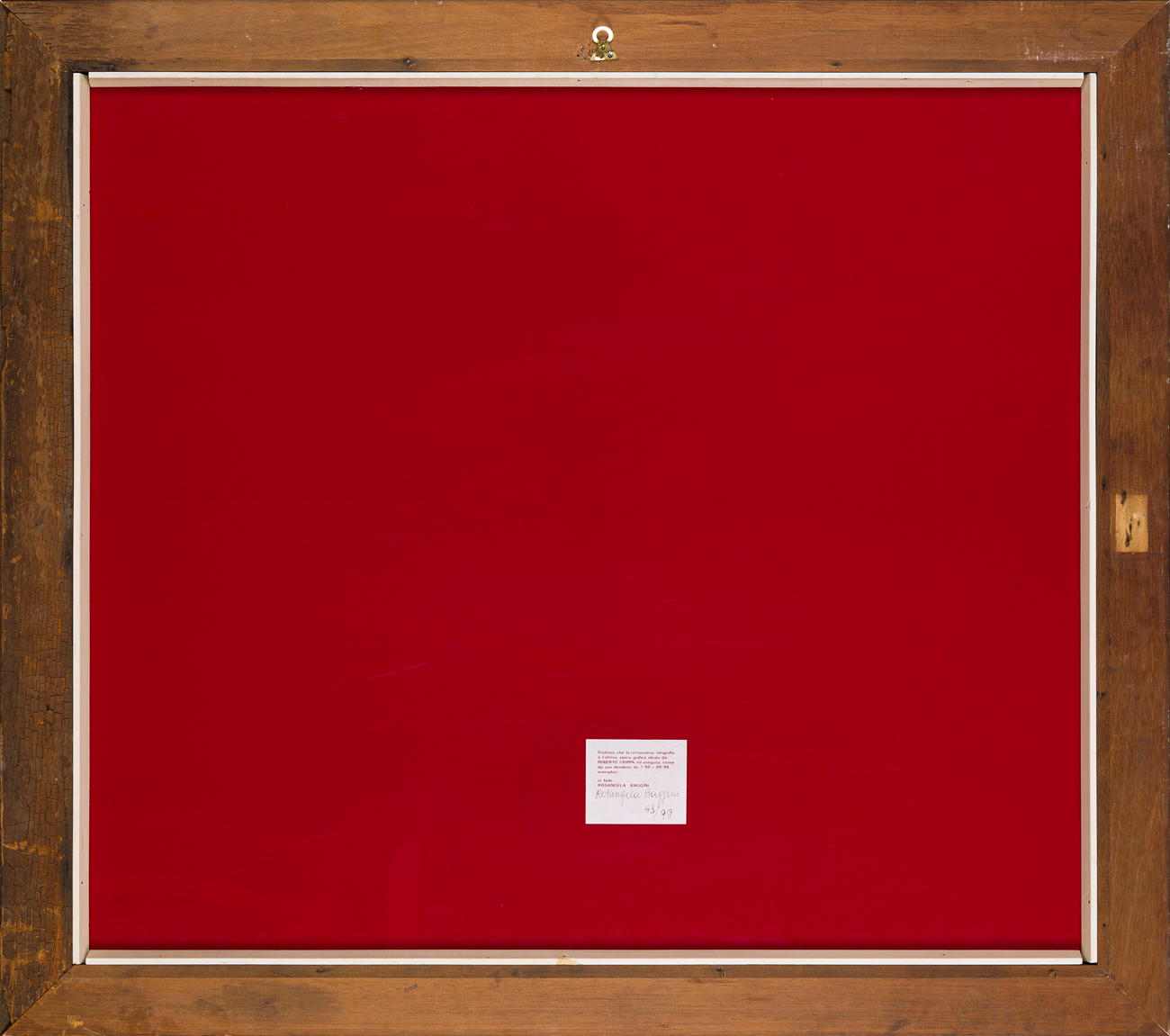 Etichetta a cura di Rosangela Baggini recante numerazione (esemplare 63/99) al retro