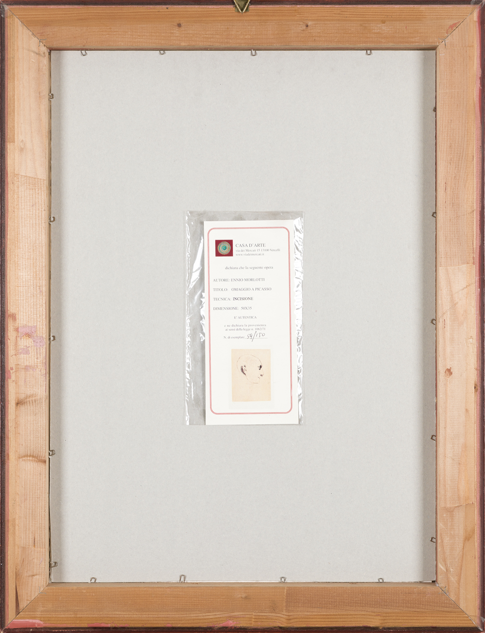 Firma e numerazione (Esemplare 59/150) a matita al fronte