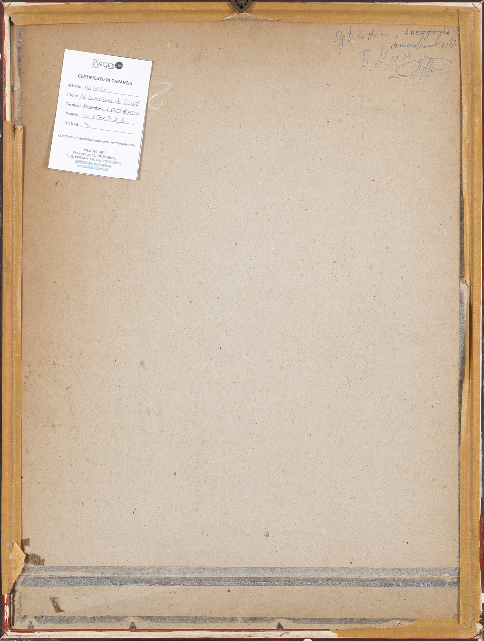 Etichetta della Galleria d'Arte Pisacane (MI) al retro del cartone protettivo