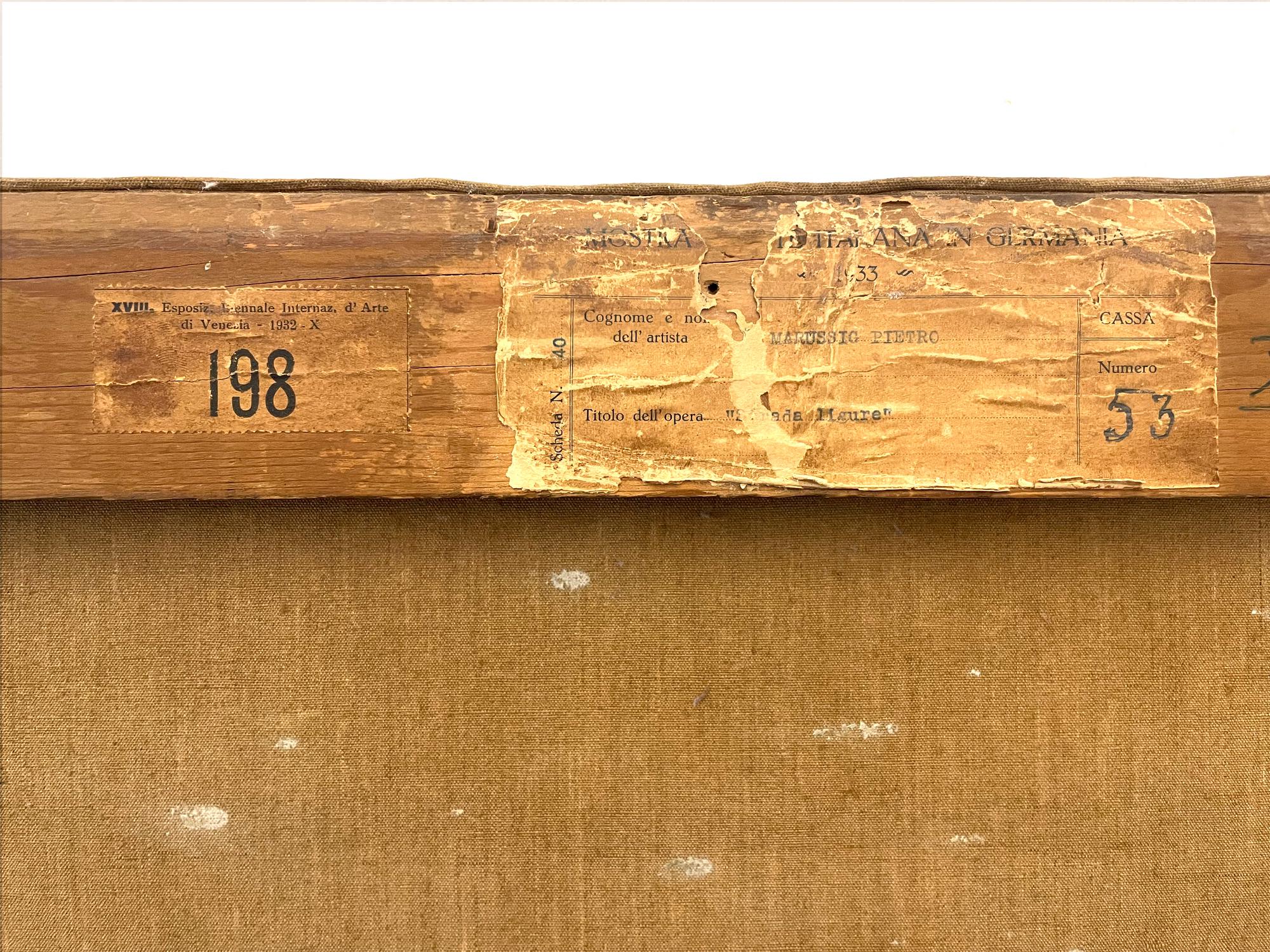 Firma in basso a destra. Al retro: etichette XVIII Esposizione Biennale Internazionale d'Arte di Venezia, 1932 e dell'Italienische Kunst Ausstellung in Deutschland, 1933, n. 53. Pubblicazioni: Somarè 1932, p. 32; XVIII Biennale Internazionale d'Arte di Venezia 1932, sala 29, n. 31, tav. 72 (ripr.); C. Gian Ferrari, N. Colombo, E. Pontiggia, Piero Marussig (1879- 1937). Catalogo generale, Cinisello Balsamo, 2006, p.211, n. 668; (ripr.); Alessandra Tiddia, Piero Marussig, Trieste, 2015, p.333, tav. 710. Esposizioni: Italienische Kunst Ausstellung in Deutschland, 1933; XVIII Esposizione Biennale Internazionale d'Arte di Venezia, 1932, sala 29, n. 31. Provenienza: Galleria del Milione, Milano; Collezione privata, Roma.