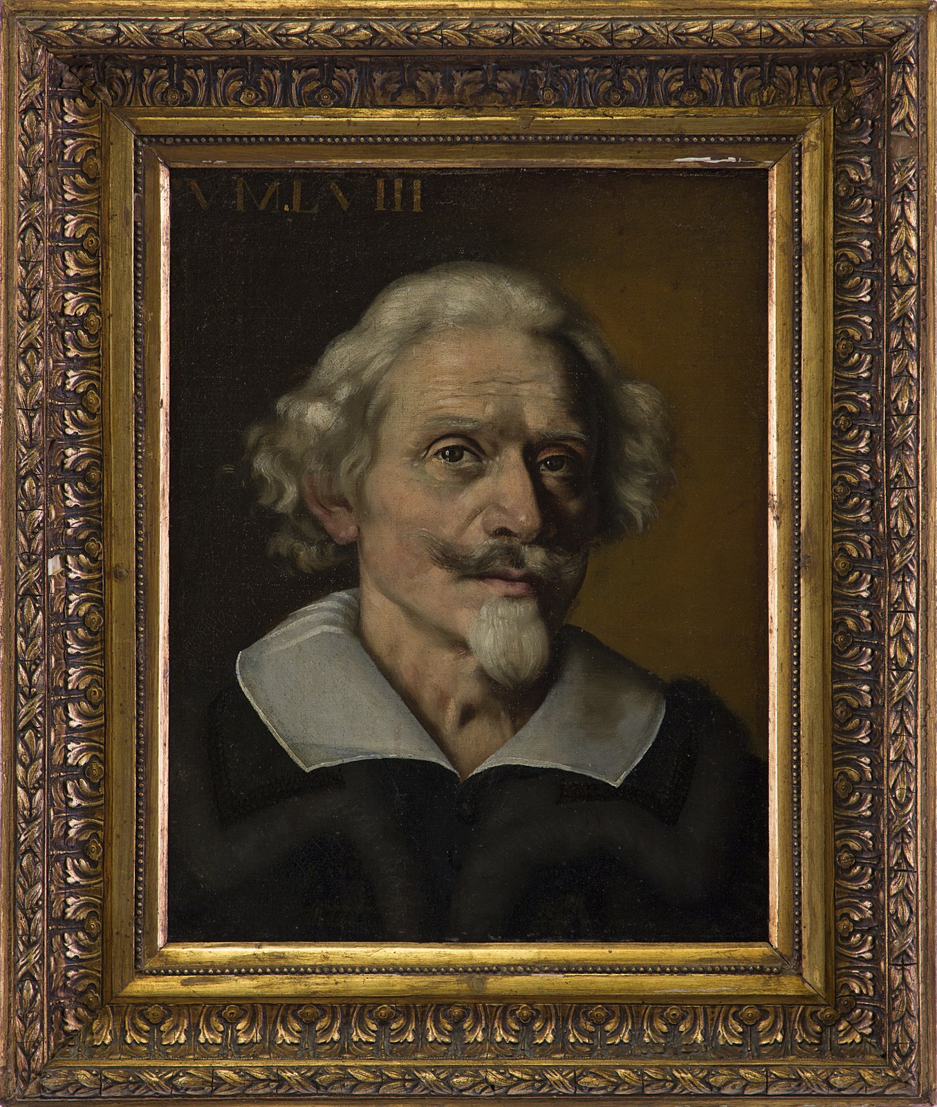 ARTISTA ROMANO DEL XVII SECOLO Ritratto di gentiluomo. Olio su tela . Cm 37,00 x 47,00. In alto a sinistra riporta la data: " V MLVIII". . Cornice presente