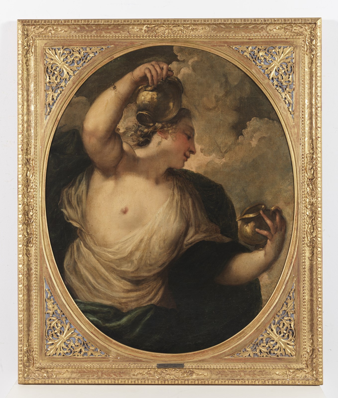 CERVELLI FEDERICO (1642 - 1696) Allegoria della Temperanza. Olio su tela ovale. Cm 85,00 x 104,50. L'opera è accompagnata dalla scheda a cura di Enrico Lucchese, 20 novembre 2021.
