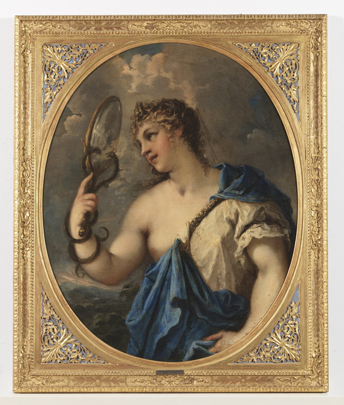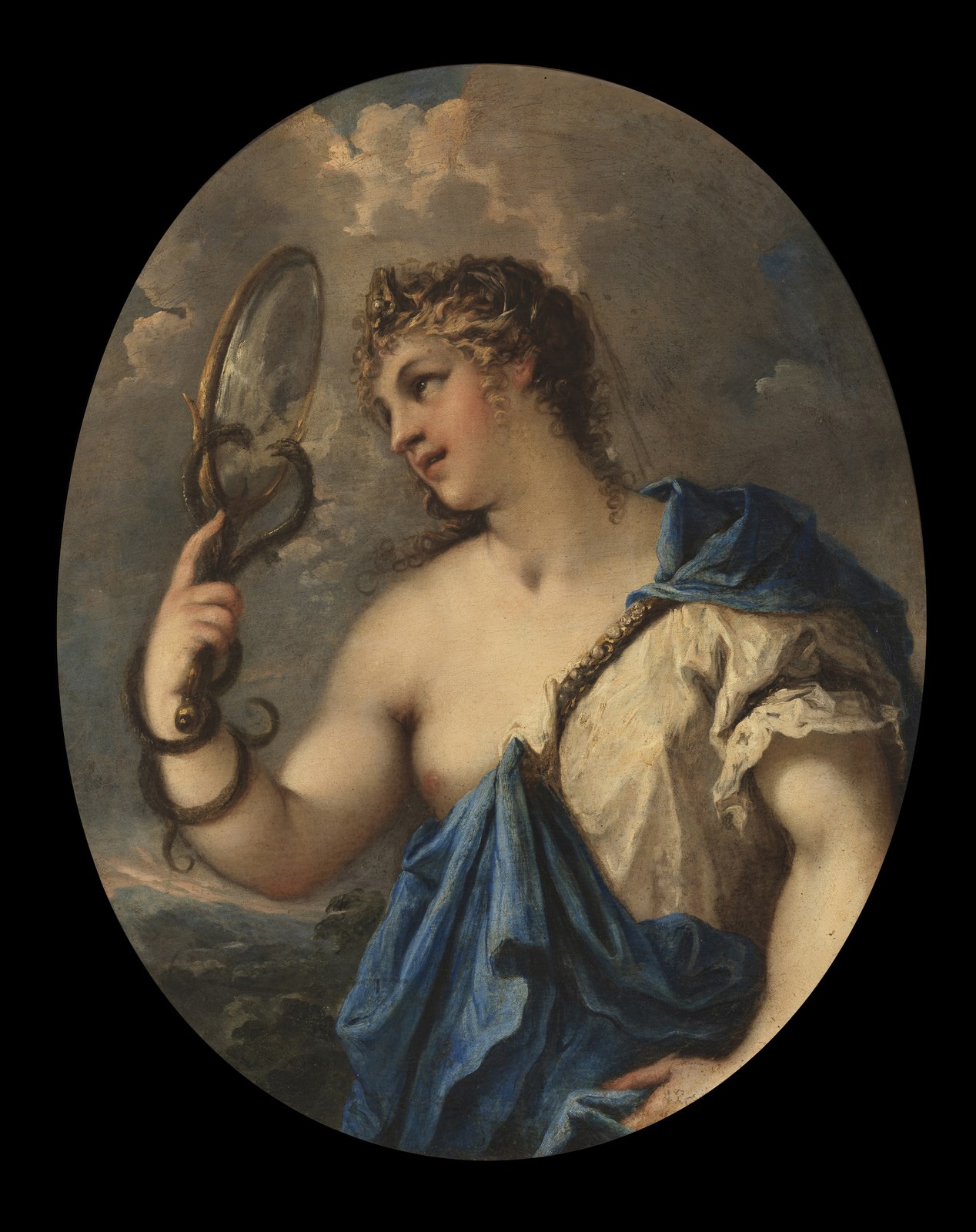 CERVELLI FEDERICO (1642 - 1696) Allegoria della Prudenza. Olio su tela ovale. Cm 84,00 x 106,00. L'opera è accompagnata dalla scheda a cura di Enrico Lucchese, 20 novembre 2021.