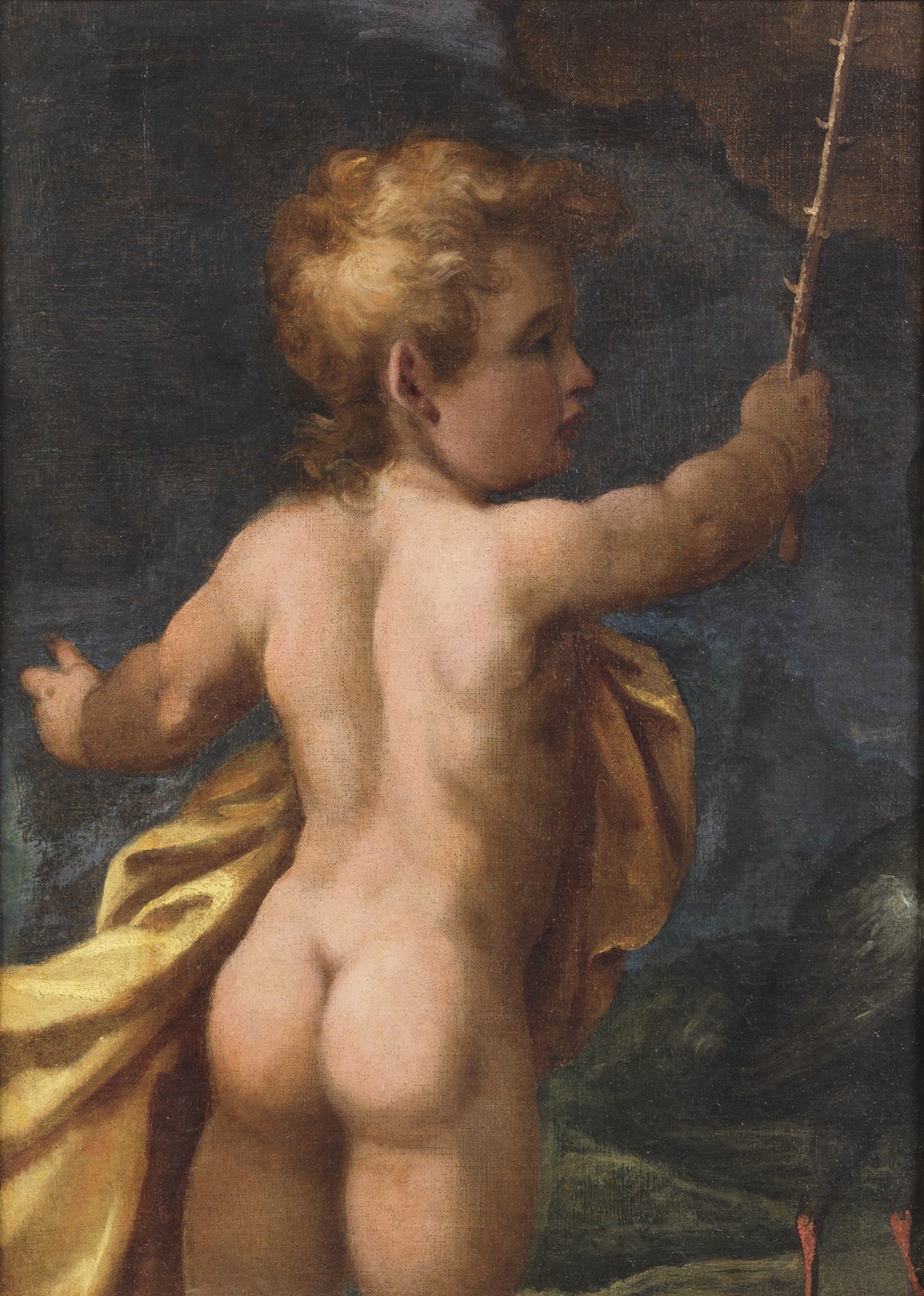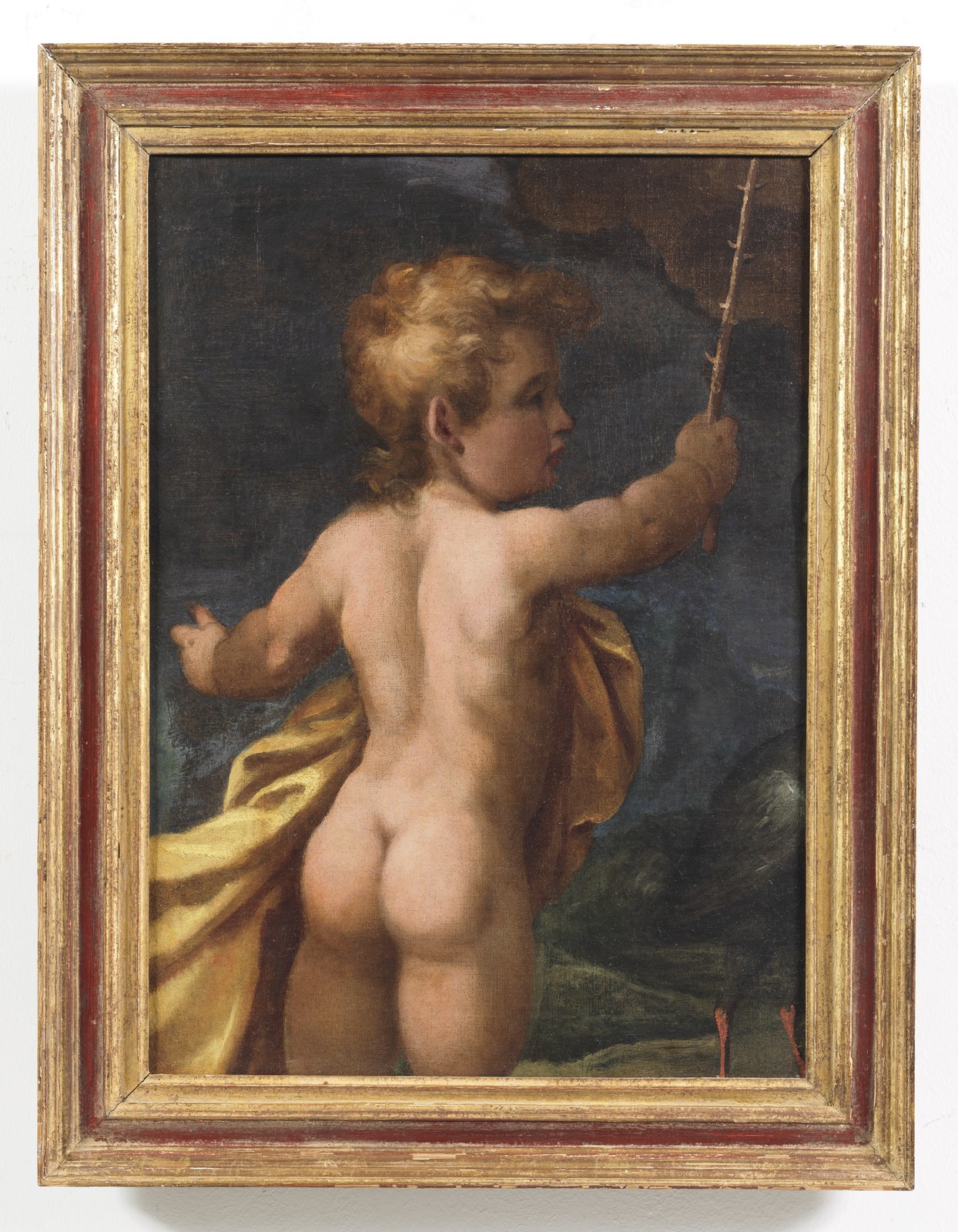 ARTISTA DEL XVII SECOLO Putto. . Olio su tela . Cm 44,00 x 62,00. . Cornice presente