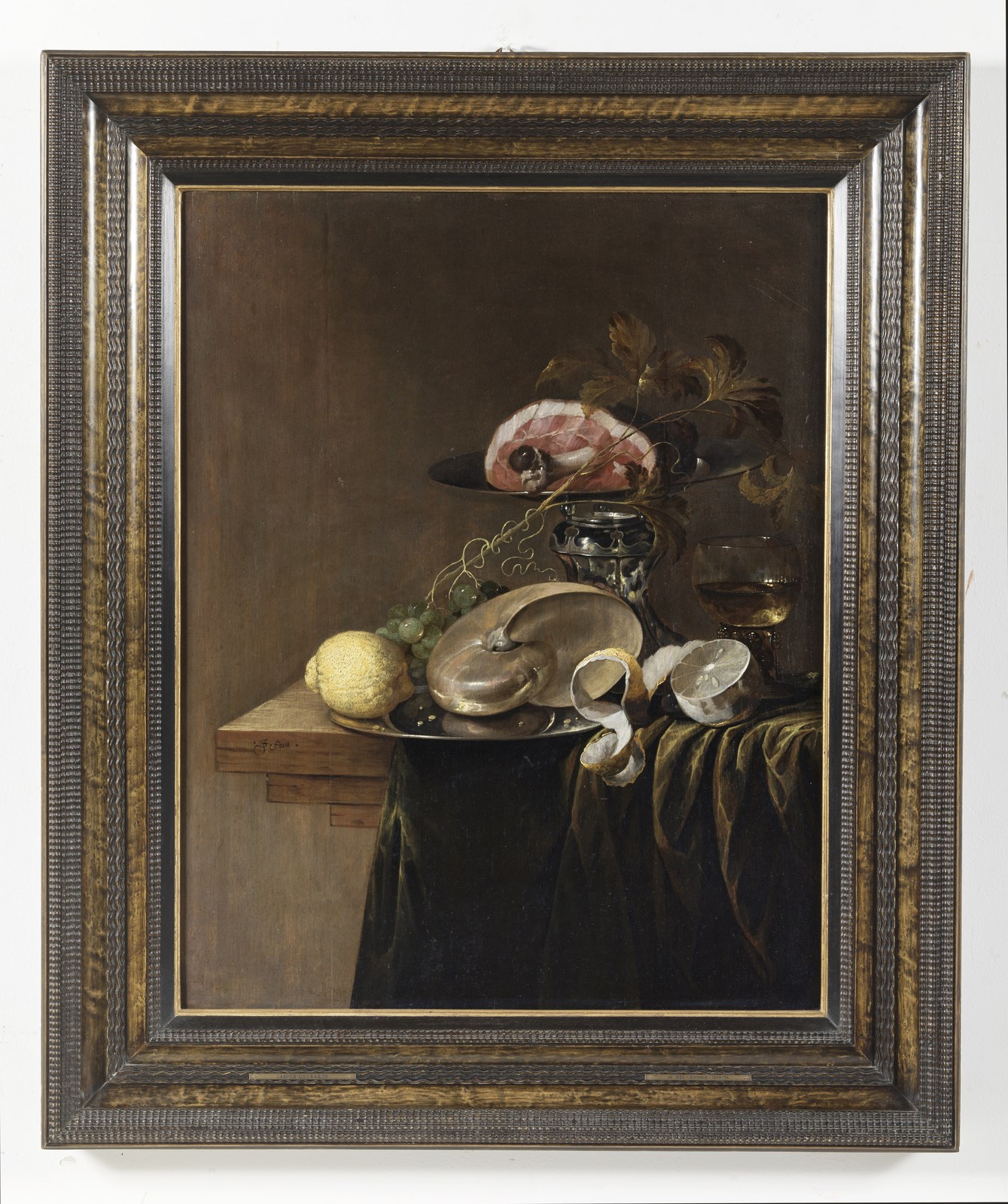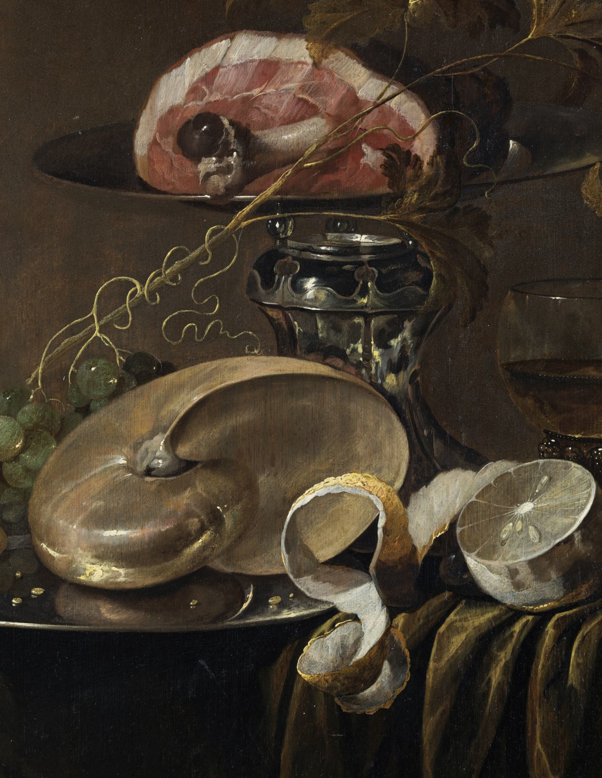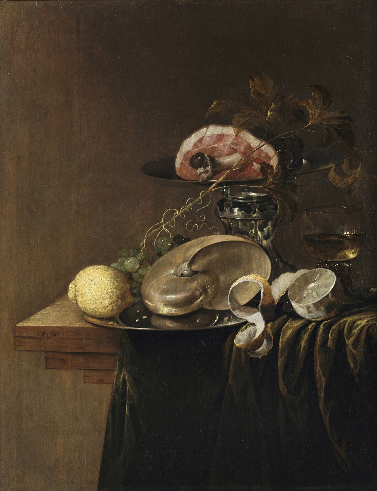 GEERARDS JASPER (1620 - 1654 circa) - Natura morta con nautilus, limoni, prosciutto e calice.