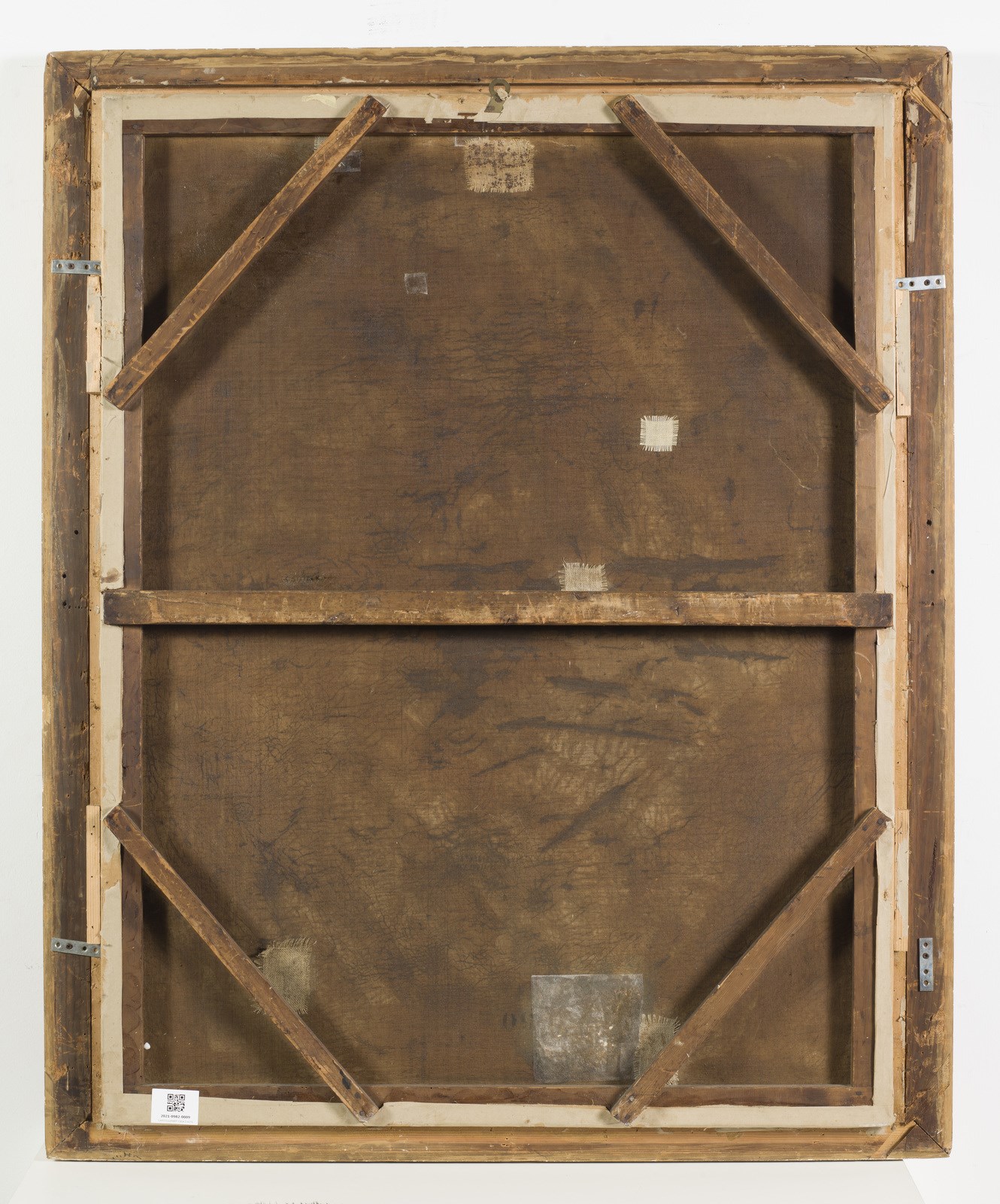 ARTISTA FRANCESE DEL XVIII-XIX SECOLO La brocca rotta. . Olio su tela . Cm 90,00 x 116,00. . Cornice presente