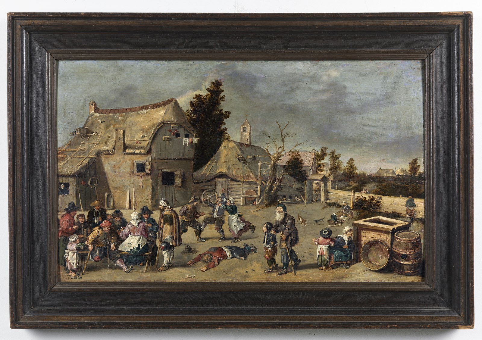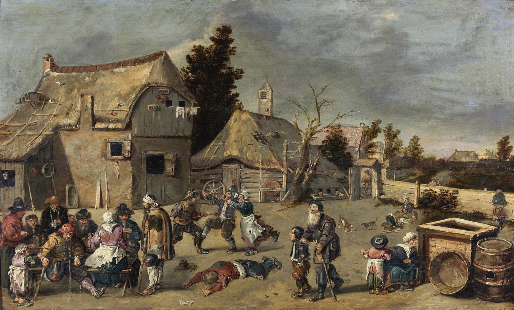 Nella rappresentazione di un borgo con i contadini in festa, l’artista olandese riporta le inevitabili degenerazioni goliardiche finanche violente di un banchetto, che avvengono ironicamente alla presenza di un mendicante cieco.