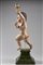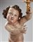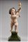SCULTORE ITALIANO DEL XVIII SECOLO Putto portacero in legno policromo su base dipinta a finto marmo verde. . Cm 26,00 x 54,00. Dimensioni della base: 15,5 x 21,2 x 21,2 cm.