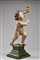 SCULTORE ITALIANO DEL XVIII SECOLO - Putto portacero in legno policromo su base dipinta a finto marmo verde.