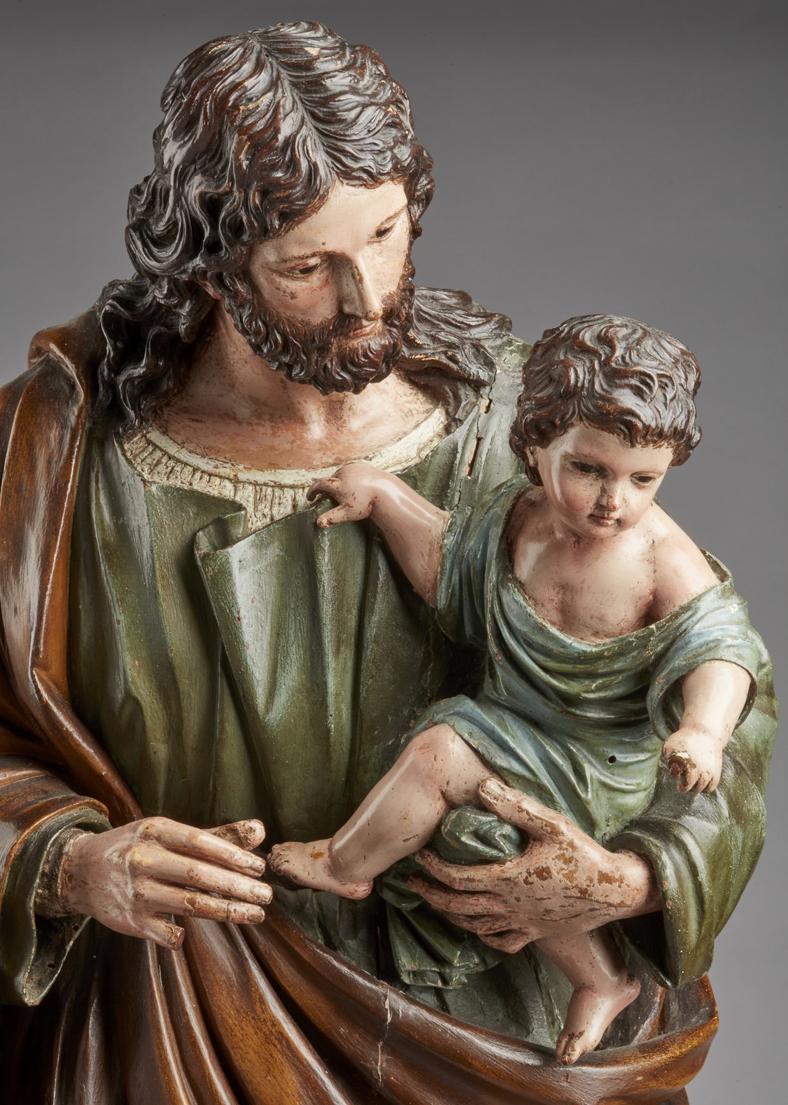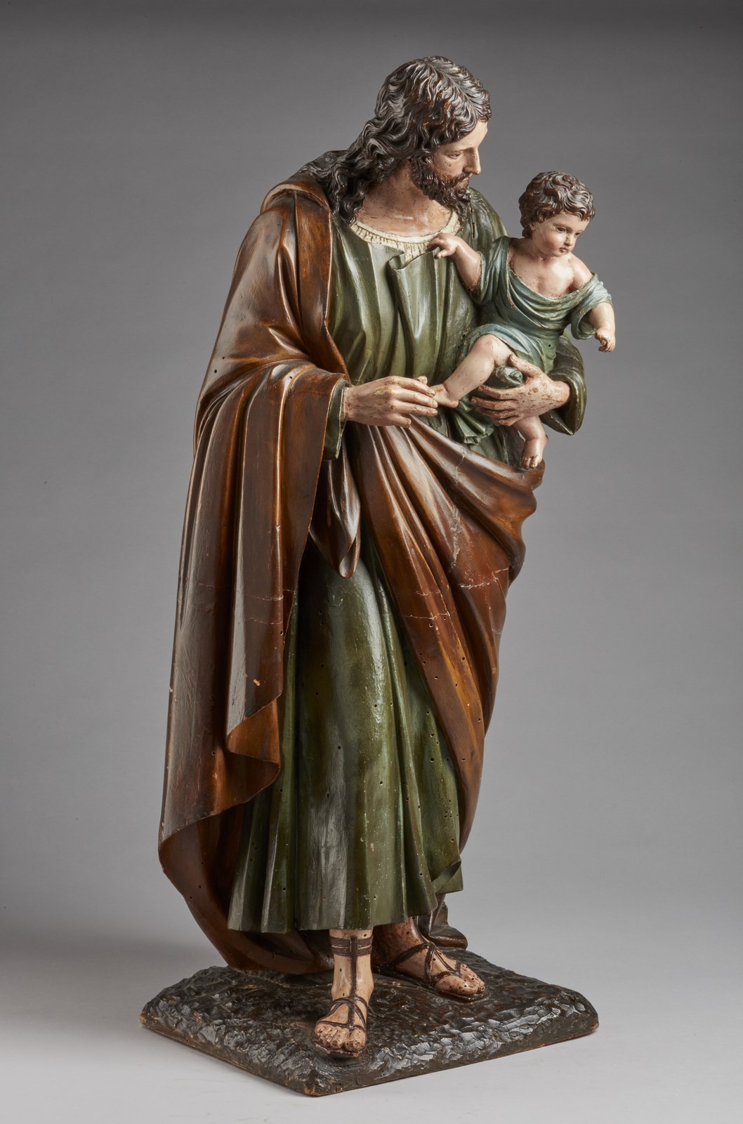 Lot 149 | SCULTORE DEL XVIII SECOLO - San Giuseppe con Cristo Bambino in legno policromo.