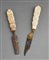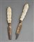 MANIFATTURA TEDESCA DEL XVII SECOLO - Coppia di posate con manico in avorio intagliato a figure e lama in ferro.