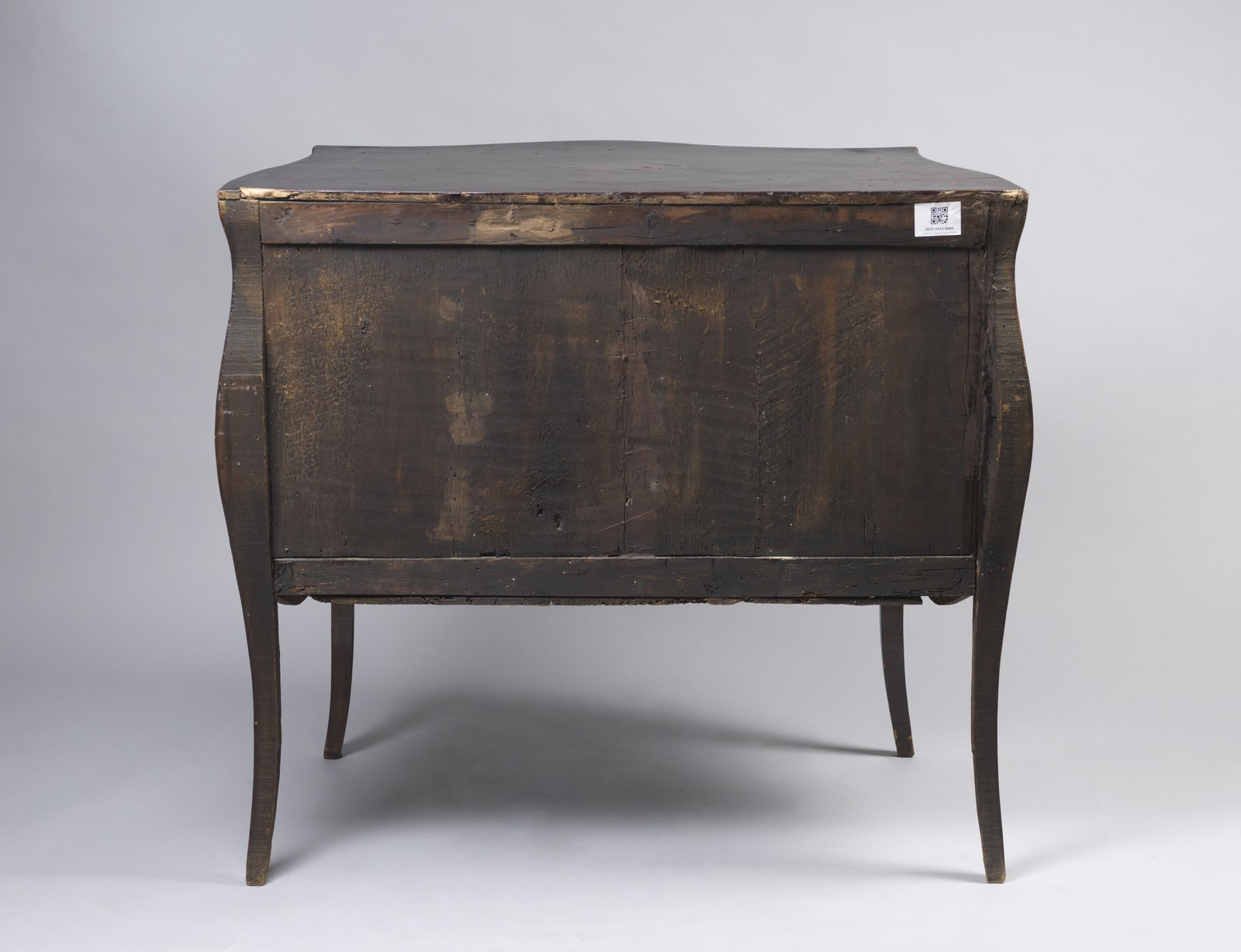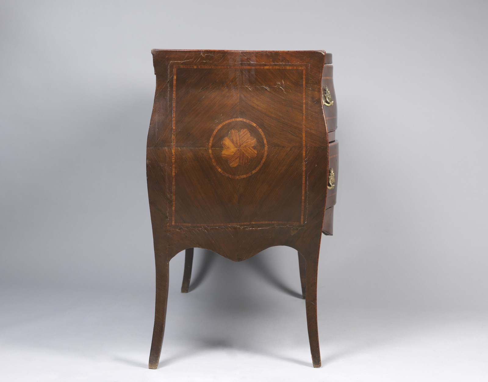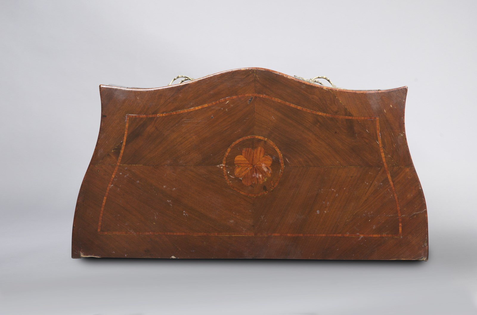 MANIFATTURA NAPOLETANA DEL XVIII SECOLO - Cassettone lastronato in palissandro e filettato in bois de rose e bois de violette, due cassetti sul fronte, gambe arcuate.
