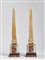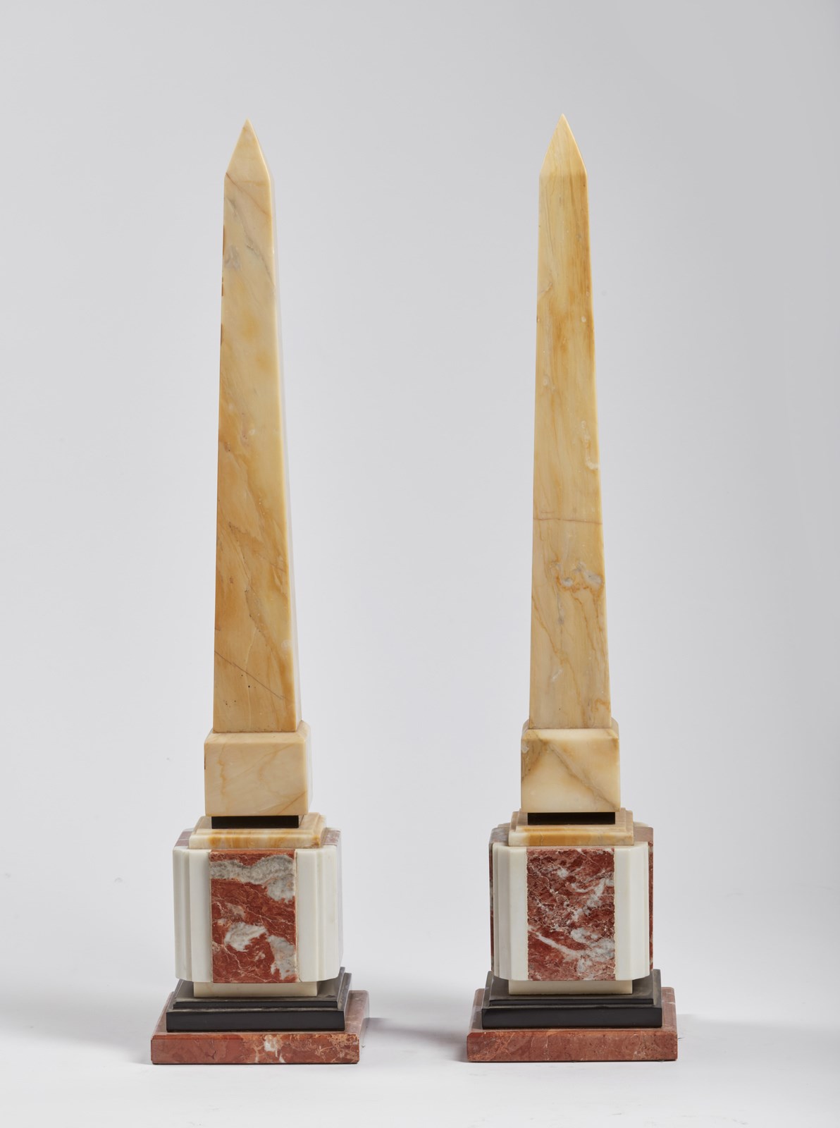 PIACENTINI MARCELLO (1881 - 1960) - Attribuito a. Coppia di obelischi in marmo giallo su base in marmo rosa di Siena e bianco del Carso.