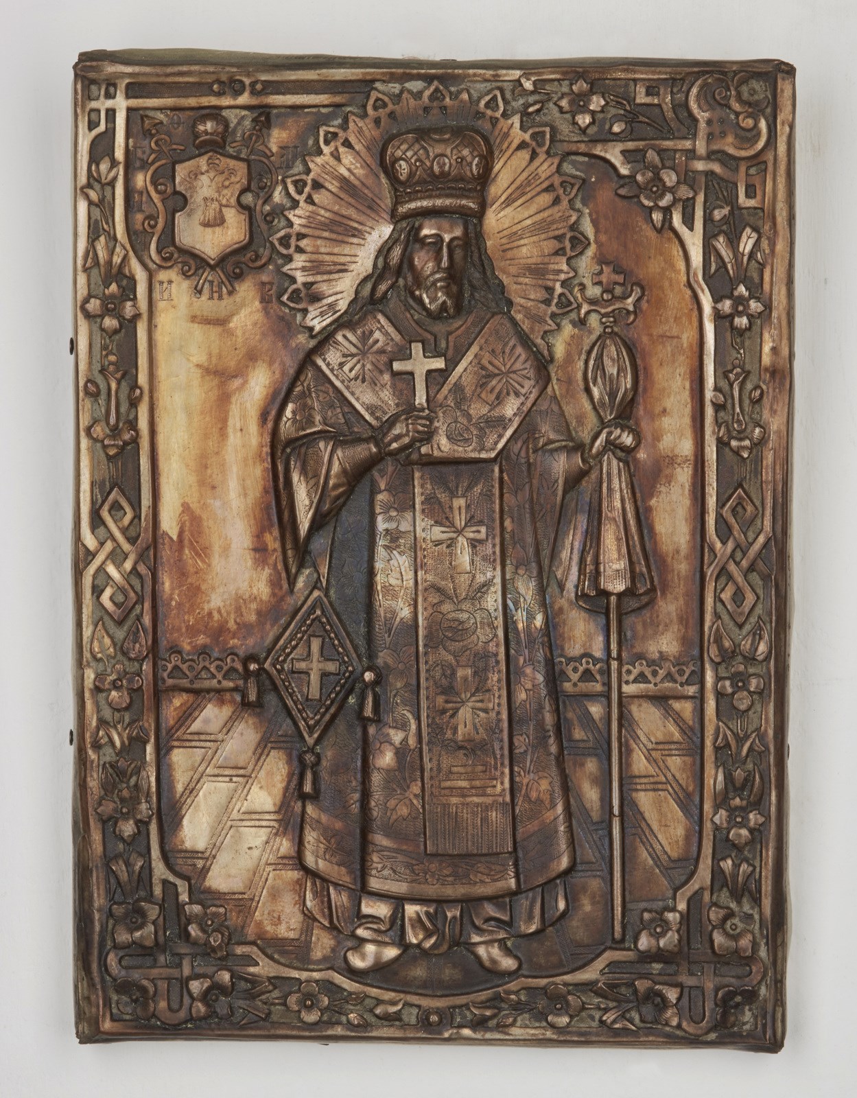 ICONA RUSSA DEL XIX SECOLO San Nicola. Metallo argentato.. Cm 12,00 x 16,50.