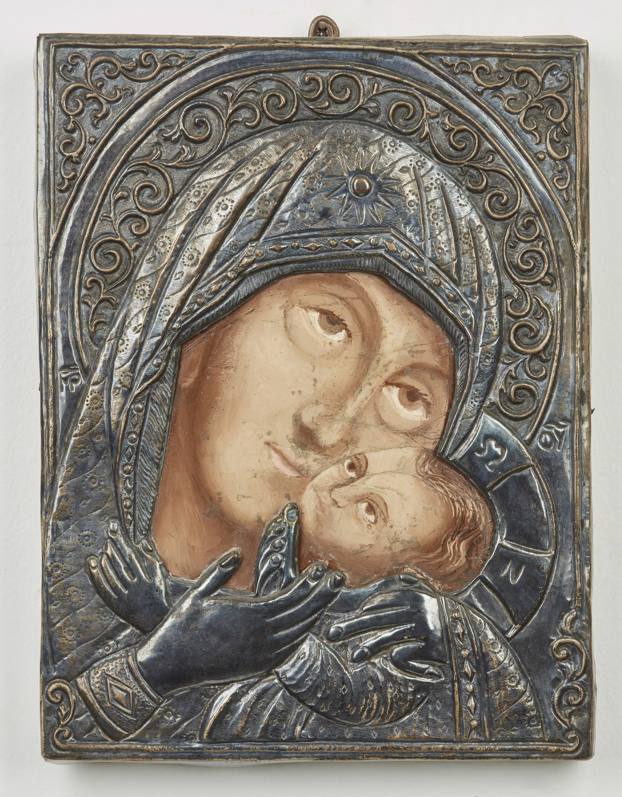 ICONA RUSSA DEL XIX SECOLO Madonna della tenerezza. Tempera su tavola. Cm 21,00 x 27,00.
