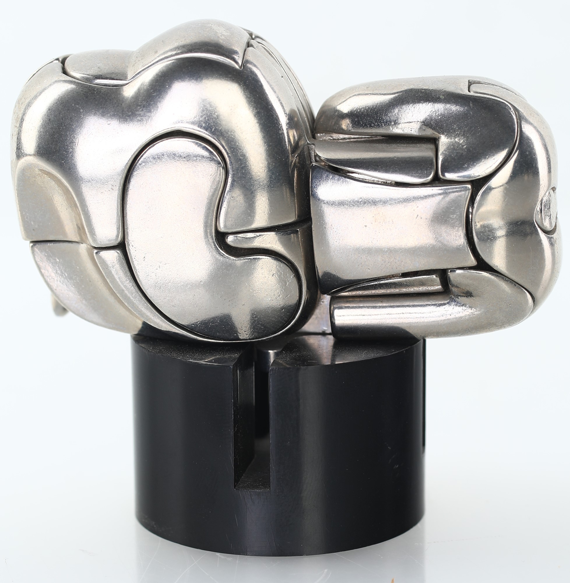 Scultura metallo nichelato, cm 7,8x3,3x4,5