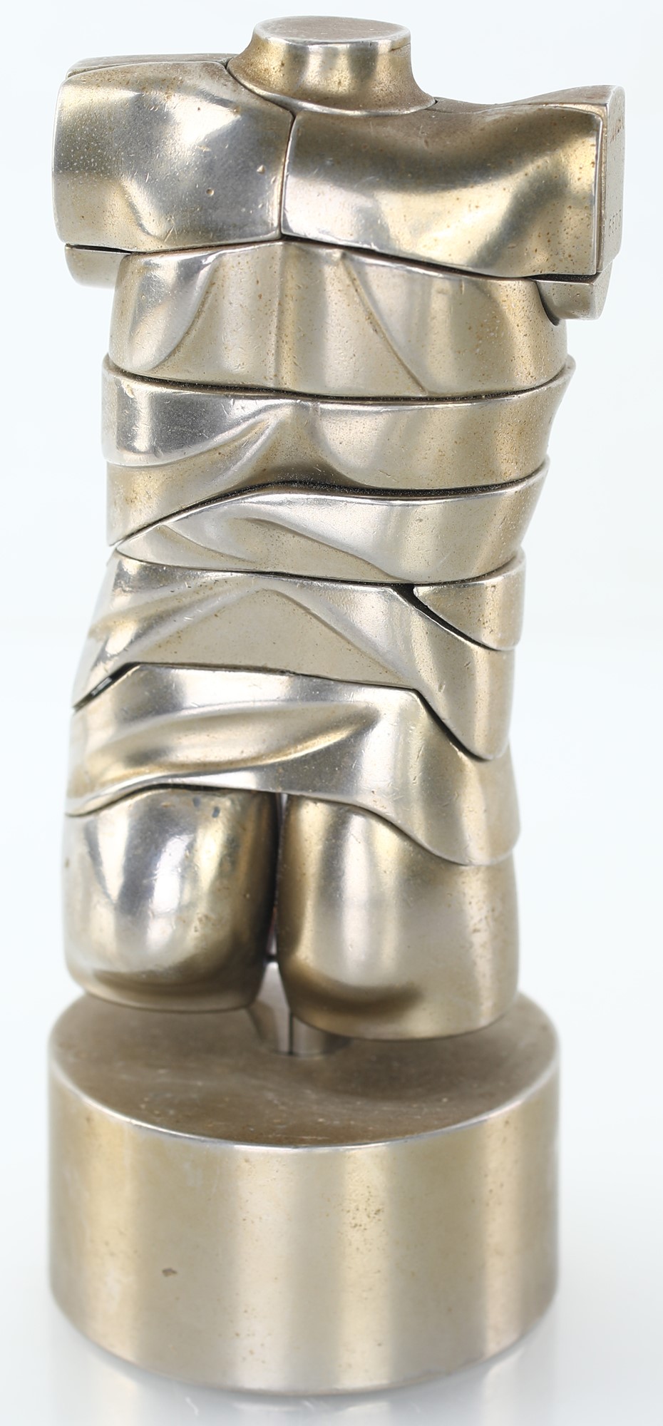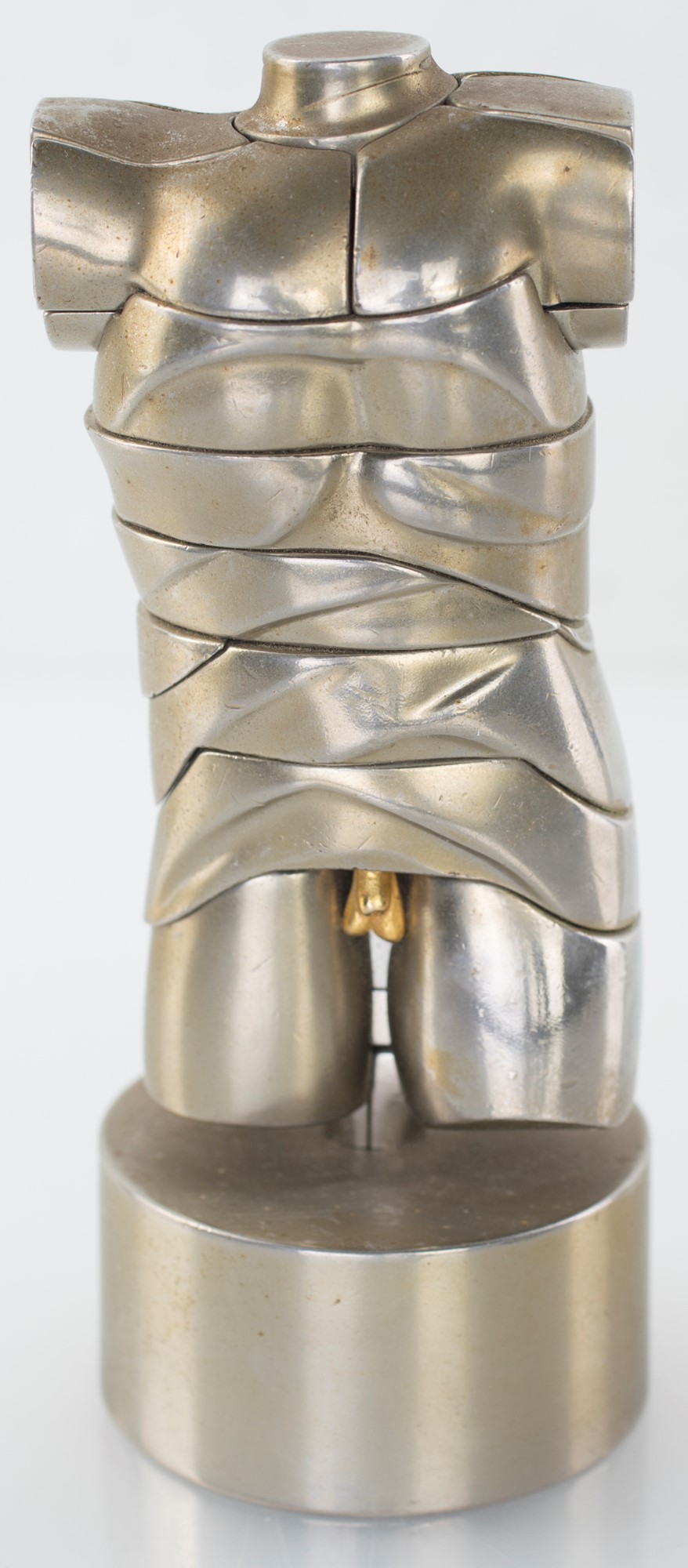 Scultura in lega di alluminio nichelato, cm 5,4x10x3,6