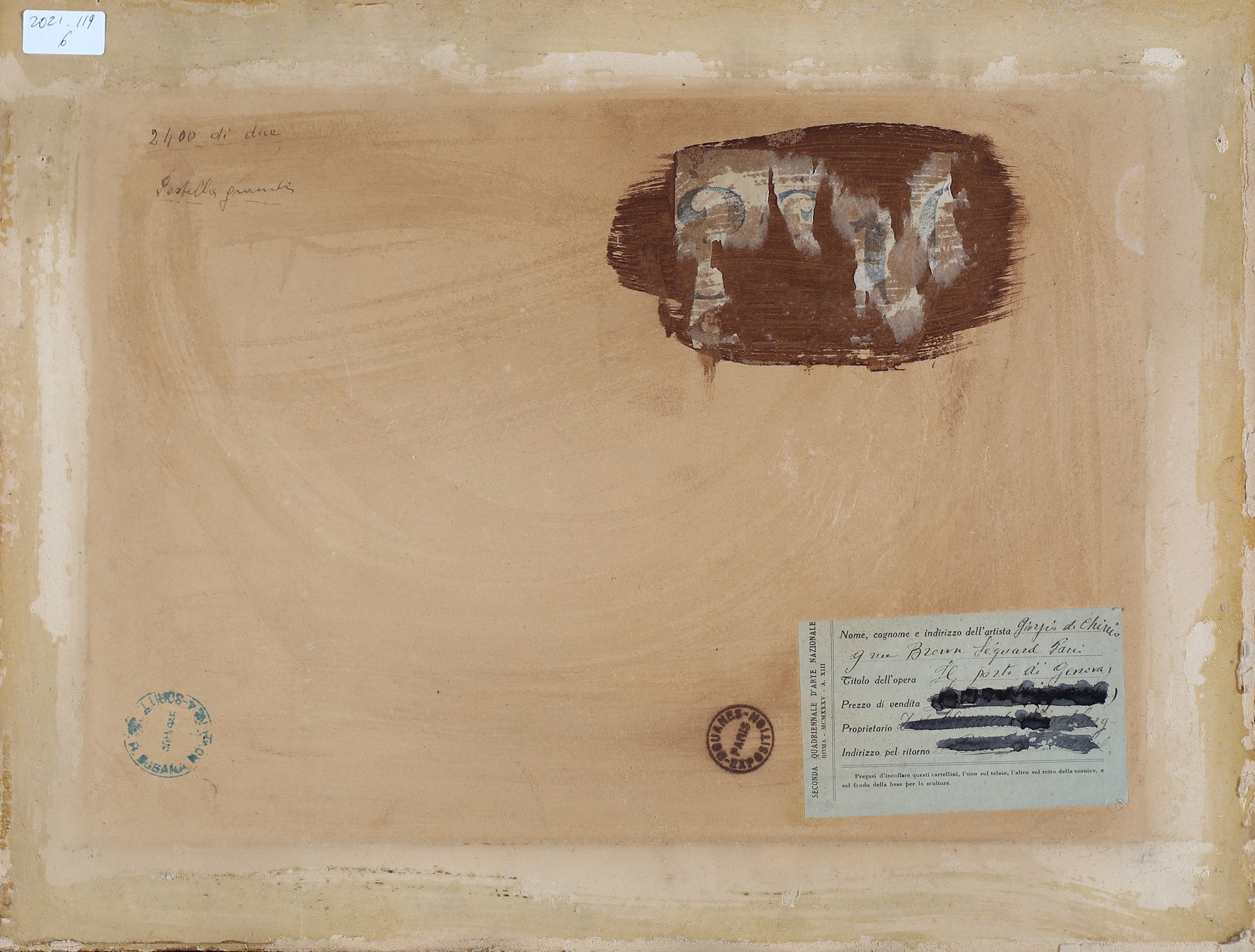 Al verso reca etichetta Seconda Quadriennale d'Arte Nazionale, Roma.
