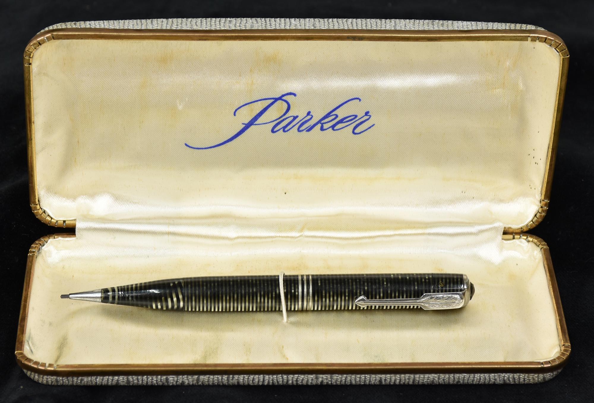 portamine Parker in celluloide rigata completa di astuccio originale