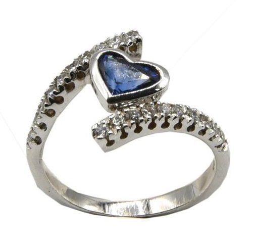ANELLO CON ZAFFIRO A CUORE E DIAMANTI