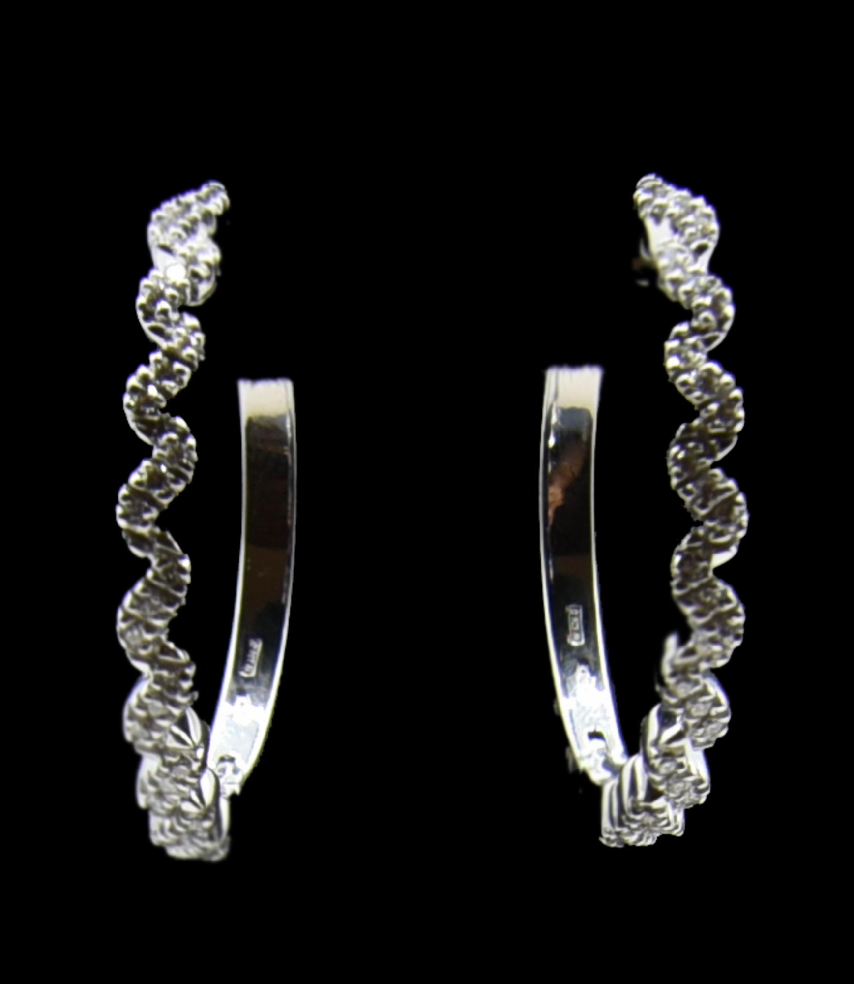 in oro bianco 18kt, di forma circolare con pave' di diamanti per complessivi 0,34 ct circa.
