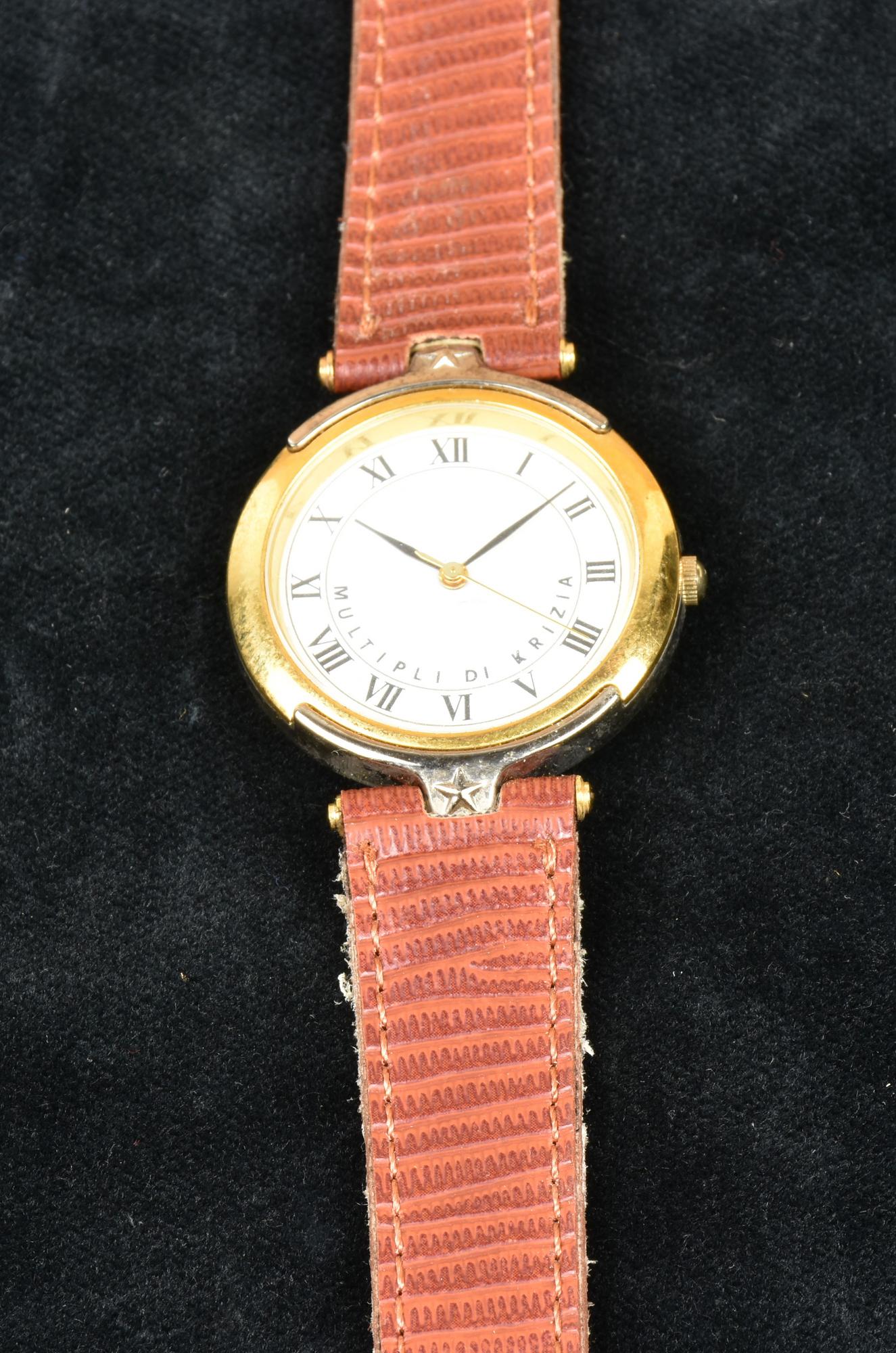 Multipli di Krizia, acciaio dorato e cinturino in pelle