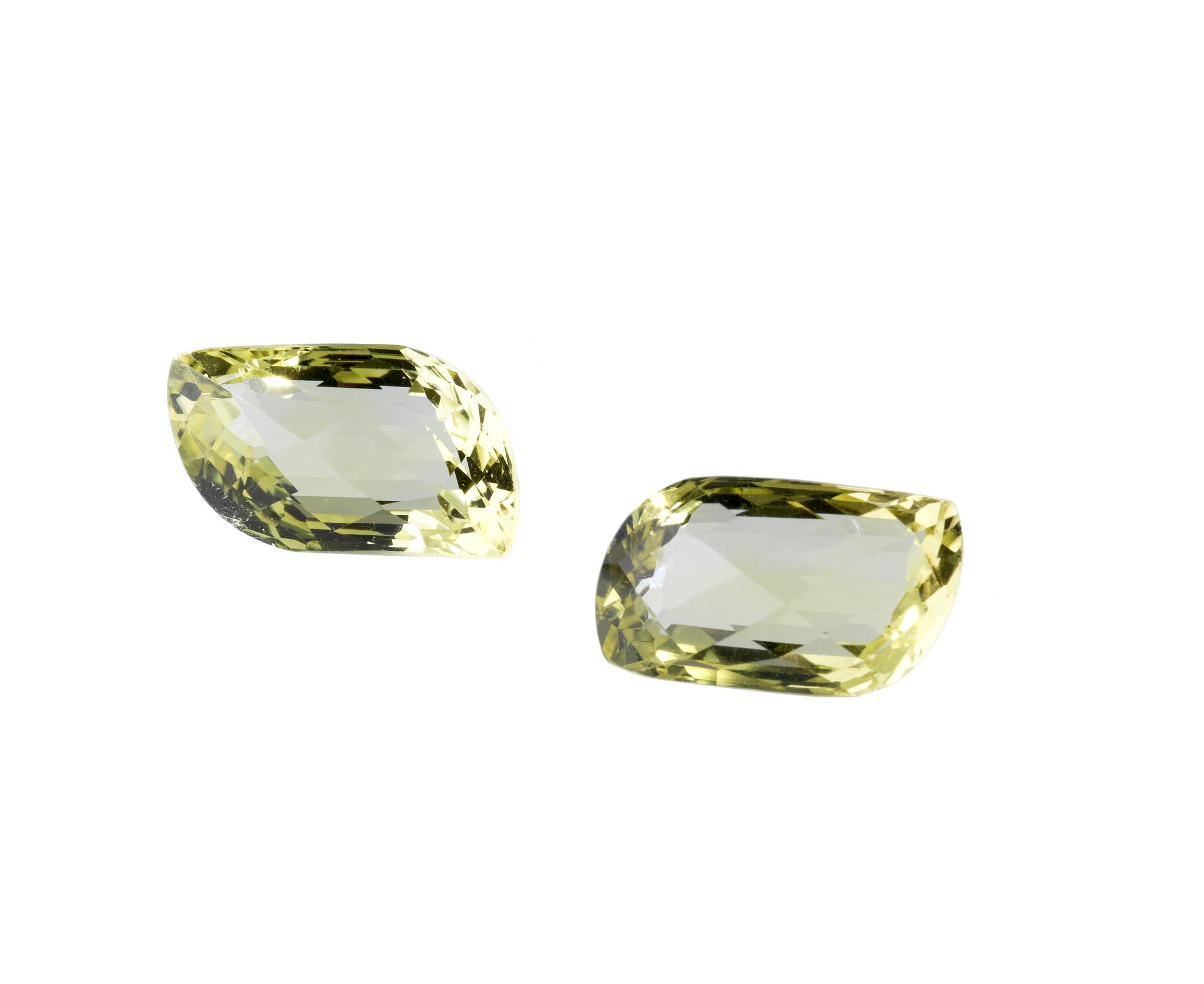 COPPIA DI QUARZI LEMON DI CT 28.73 di forma sagomata, taglio misto, mm...