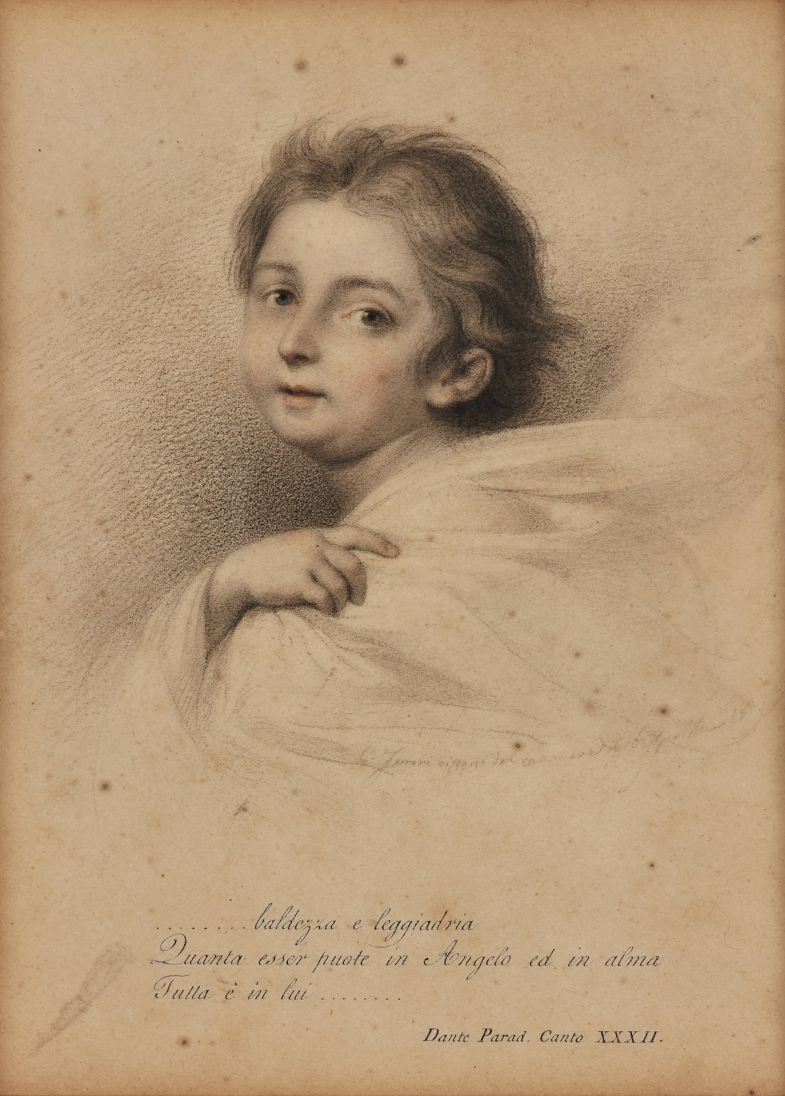 FERRERI CESAR (1802 - 1859) Angelo. Pastelli su carta. Cm 17,00 x 22,00. Firmato in basso a destra. Cornice presente