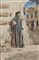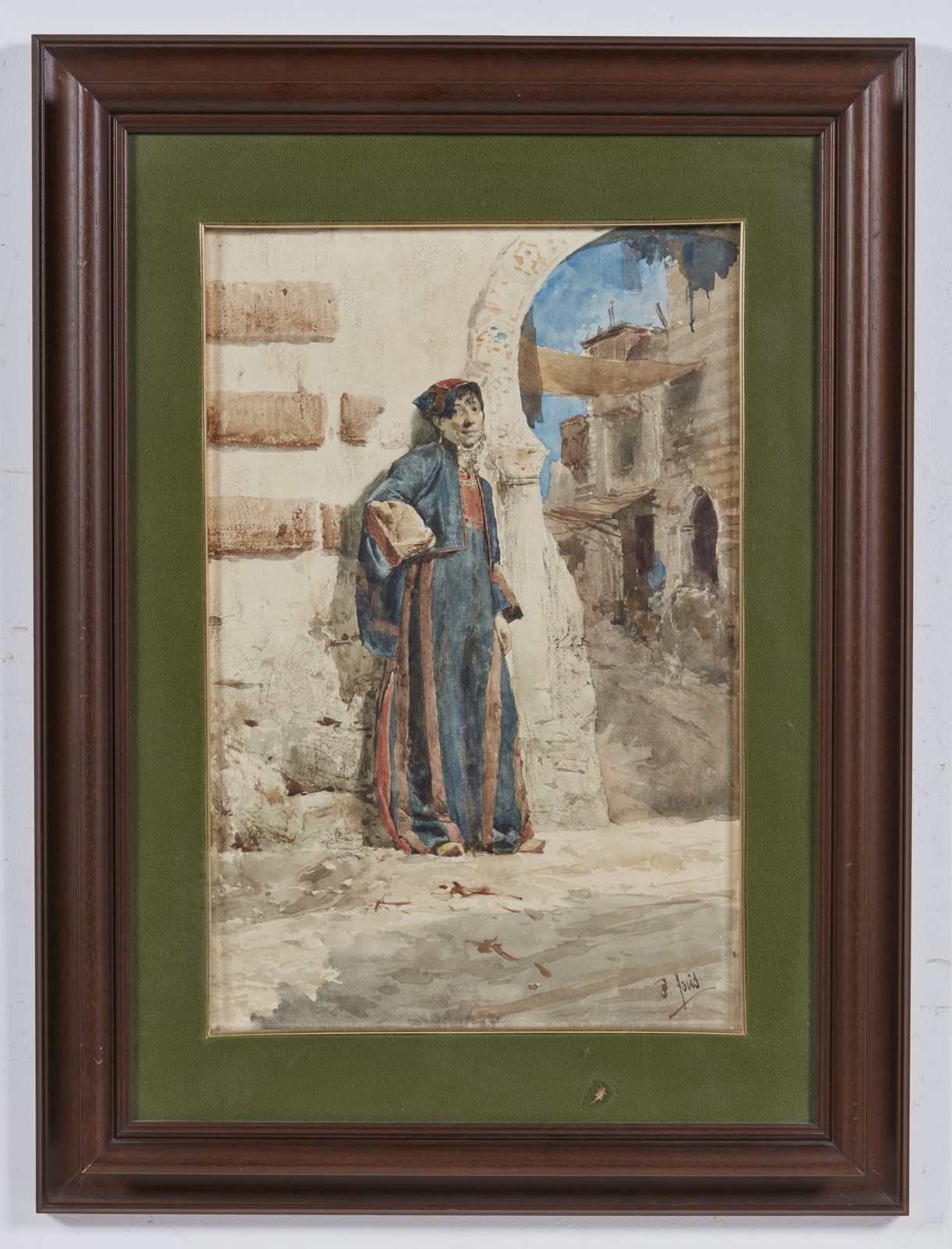 JORIS PIO (1843 - 1921) Paesaggio con donna in veste orientaleggiante. . Acquerello su carta. Cm 30,00 x 46,00. Firmato in basso a destra.