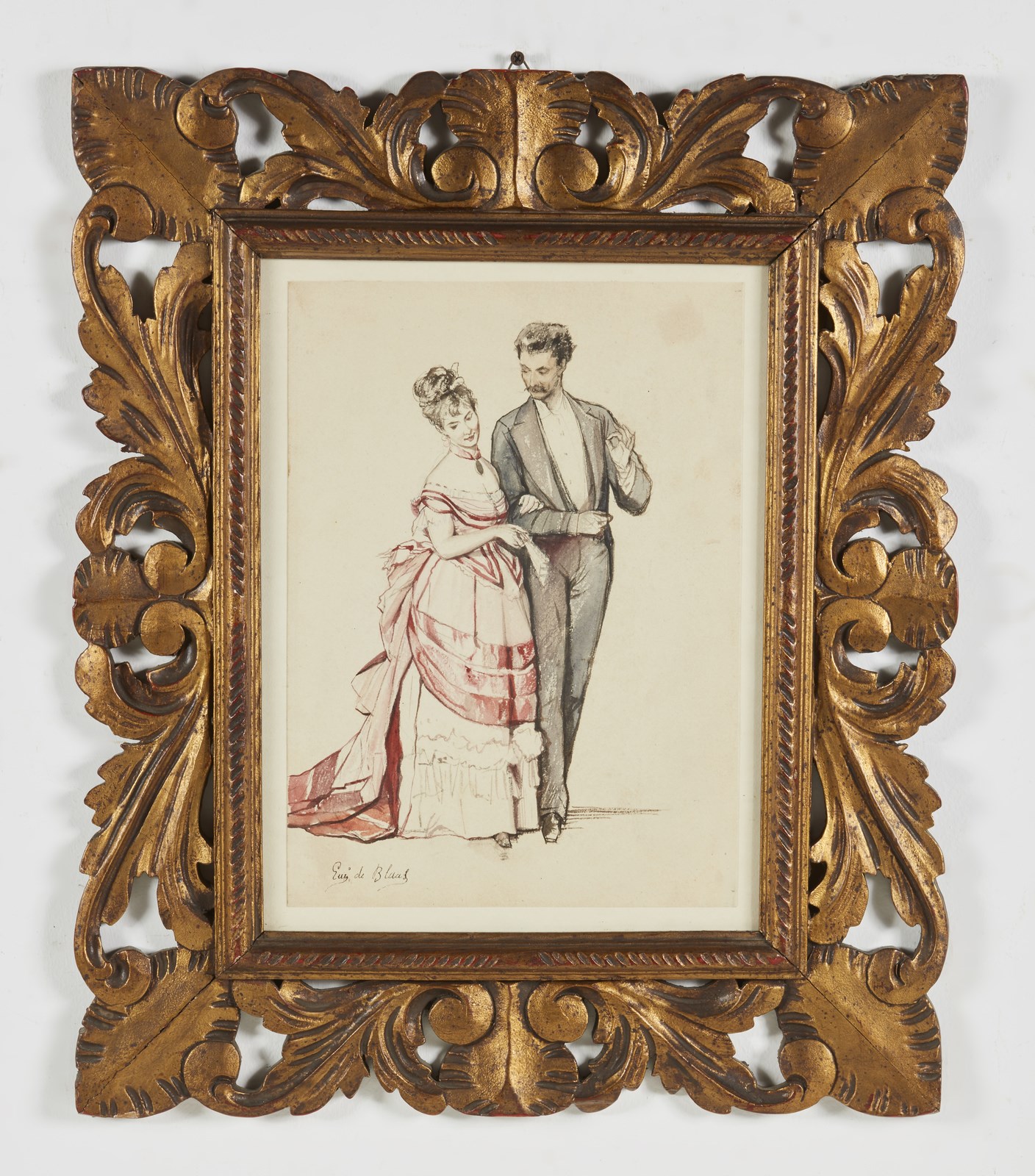 DE BLAAS EUGENE (1843 - 1931) Scena galante. Acquerello su carta. Cm 24,50 x 34,00. Firmato in basso a sinistra.