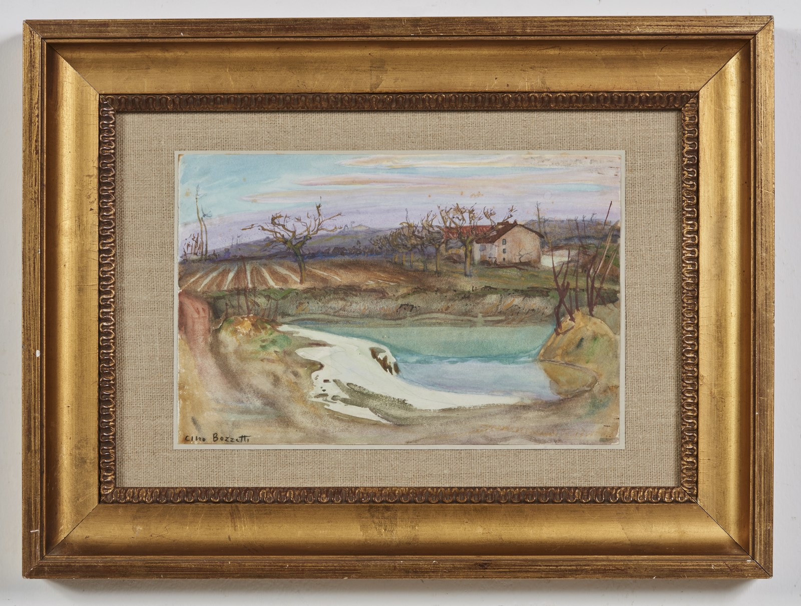BOZZETTI CINO (1876 - 1949) Paesaggio di campagna. Acquerello su carta. Cm 24,00 x 16,00. Firmato in basso a sinistra.