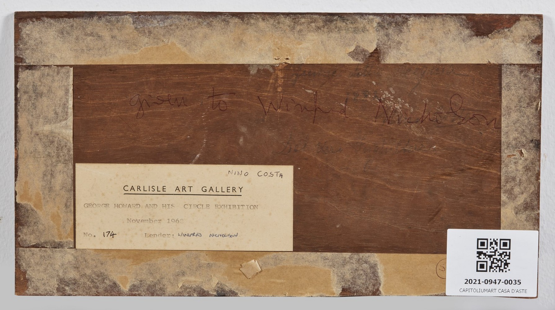 Bibliografia: Paul Nicholls, Penna e pennello, dipinti auografi di artisti italiani dell'ottocento, Paul Nicholls Studio, 1989, p. 11; AA.VV. Catalogo dell'arte italiana dell'ottocento, n.19, Mondadori editore, 1990, p. 133.