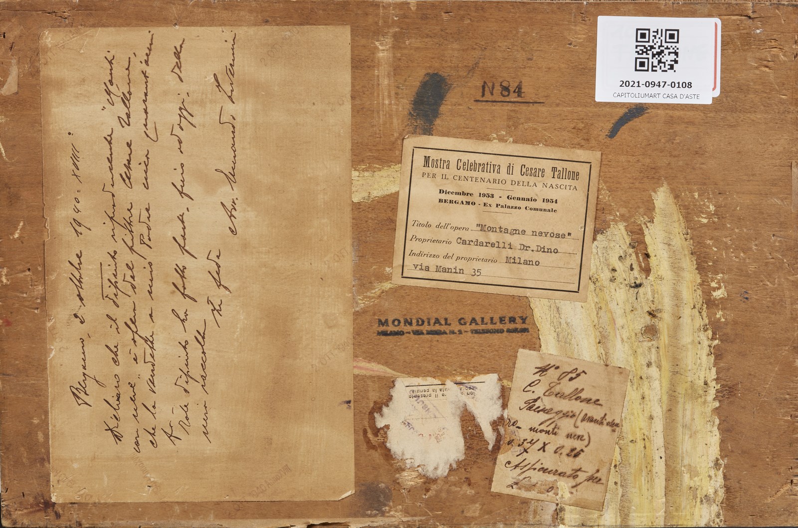 TALLONE CESARE (1853 - 1919) Paesaggio montano. . Olio su tavola. Cm 37,00 x 24,50. Al retro dichiarazione di autenticità a cura di Edmondo Invernizzi.