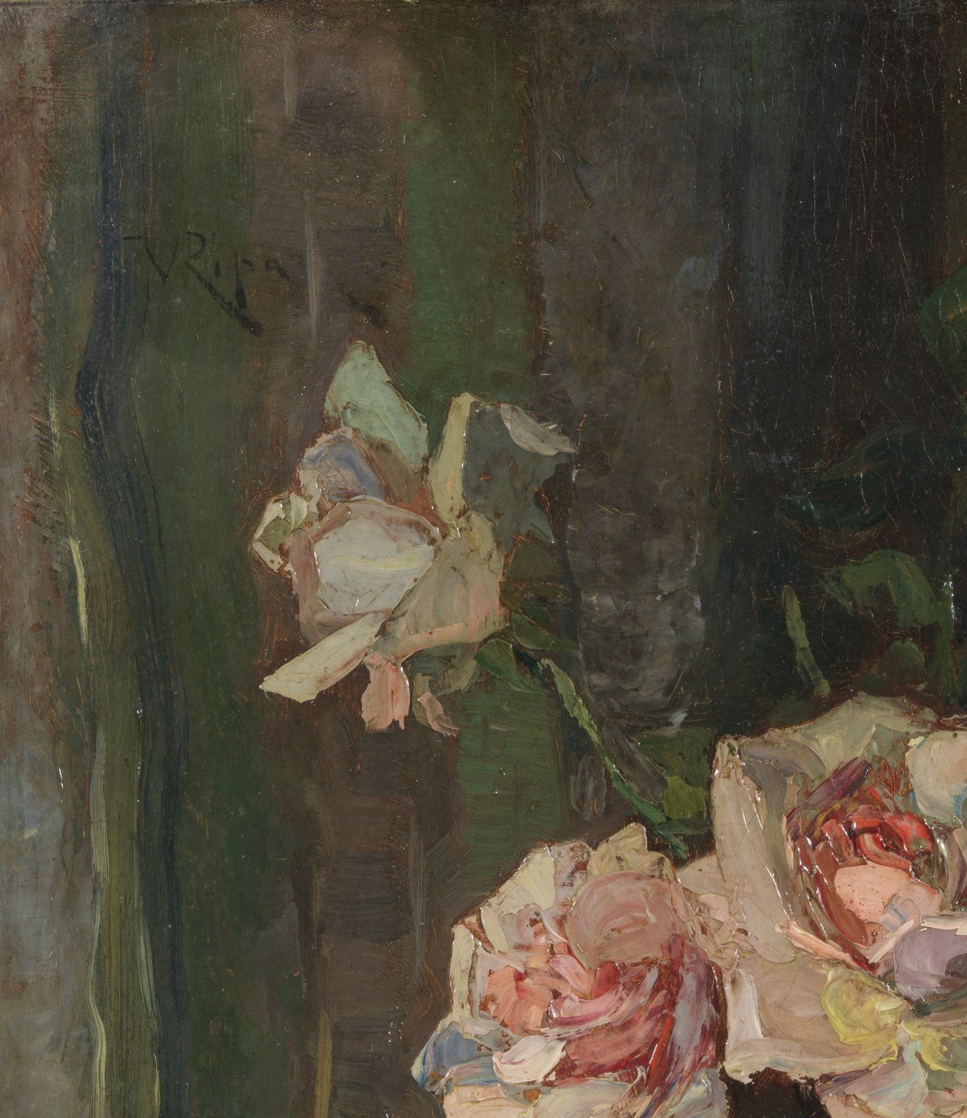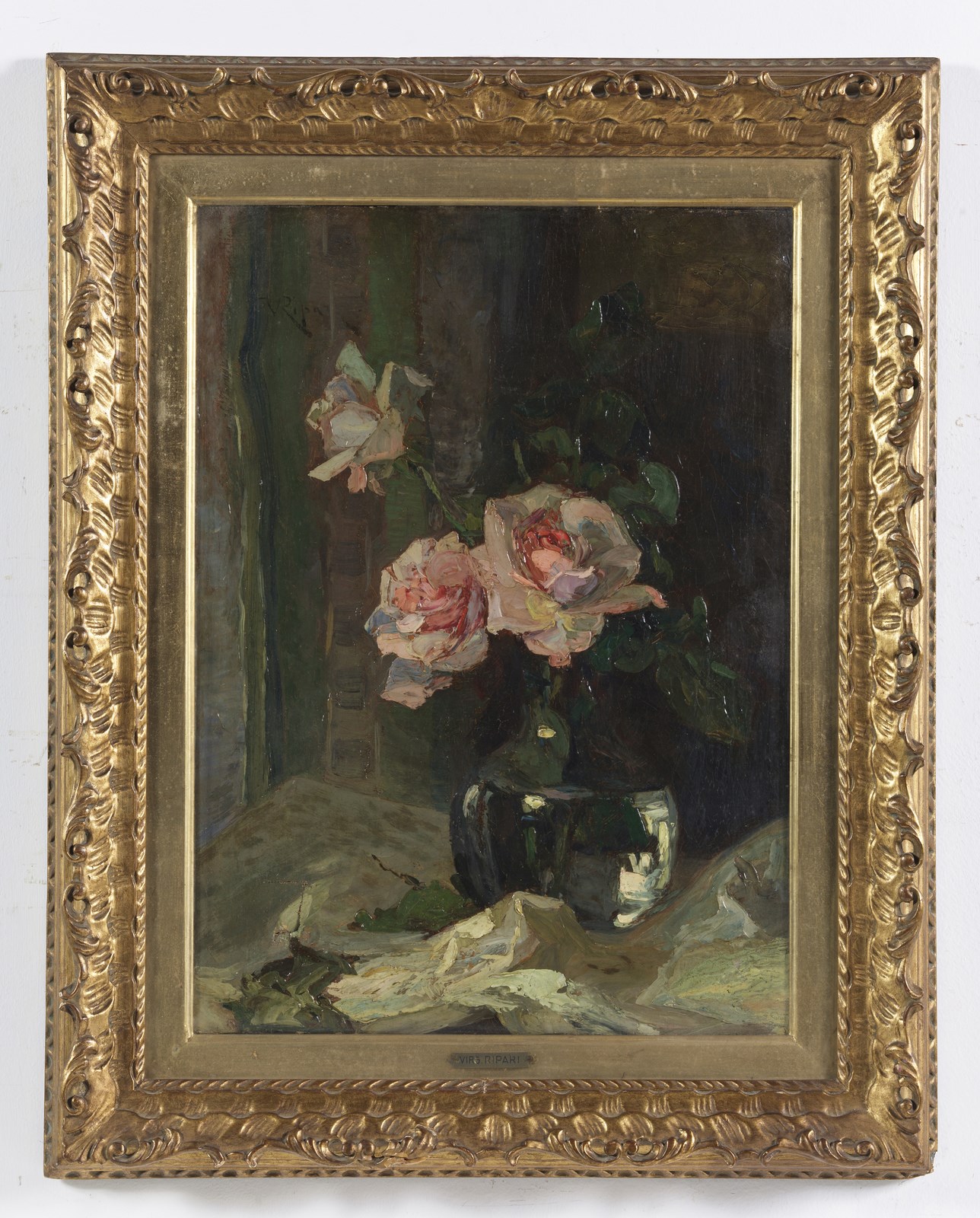 RIPARI VIRGILIO (1843 - 1902) Natura morta di fiori. . Olio su tela . Cm 40,00 x 55,00. Firmato in alto a sinistra.