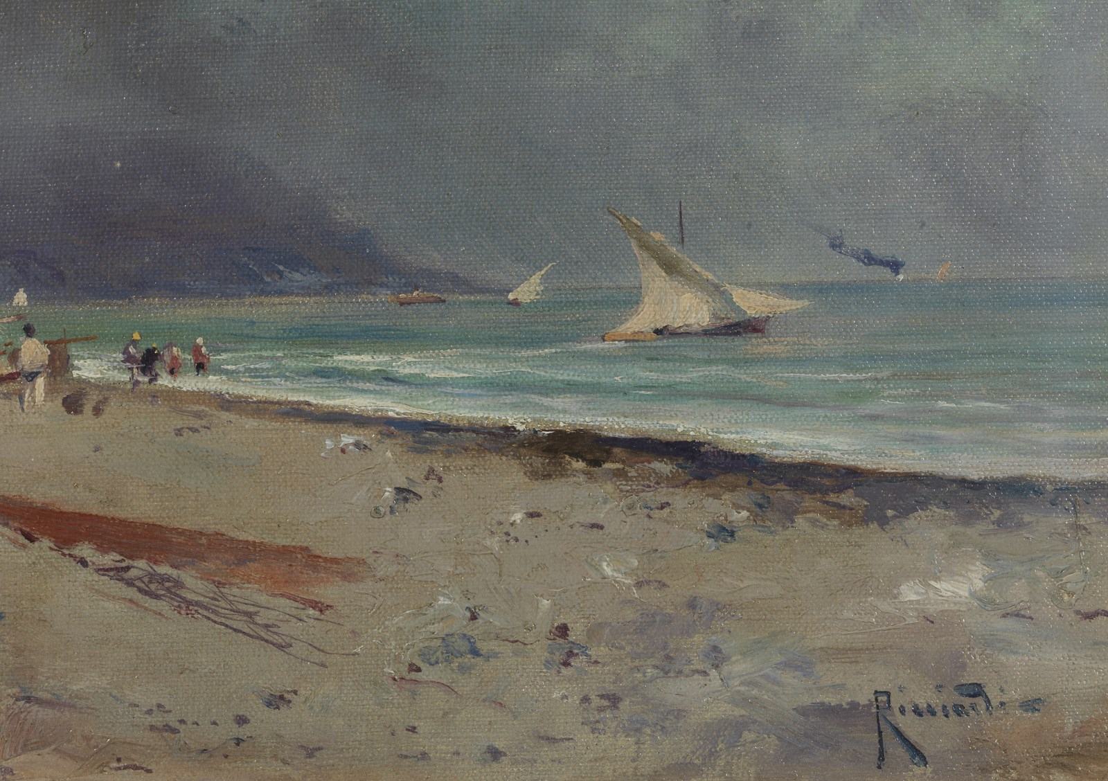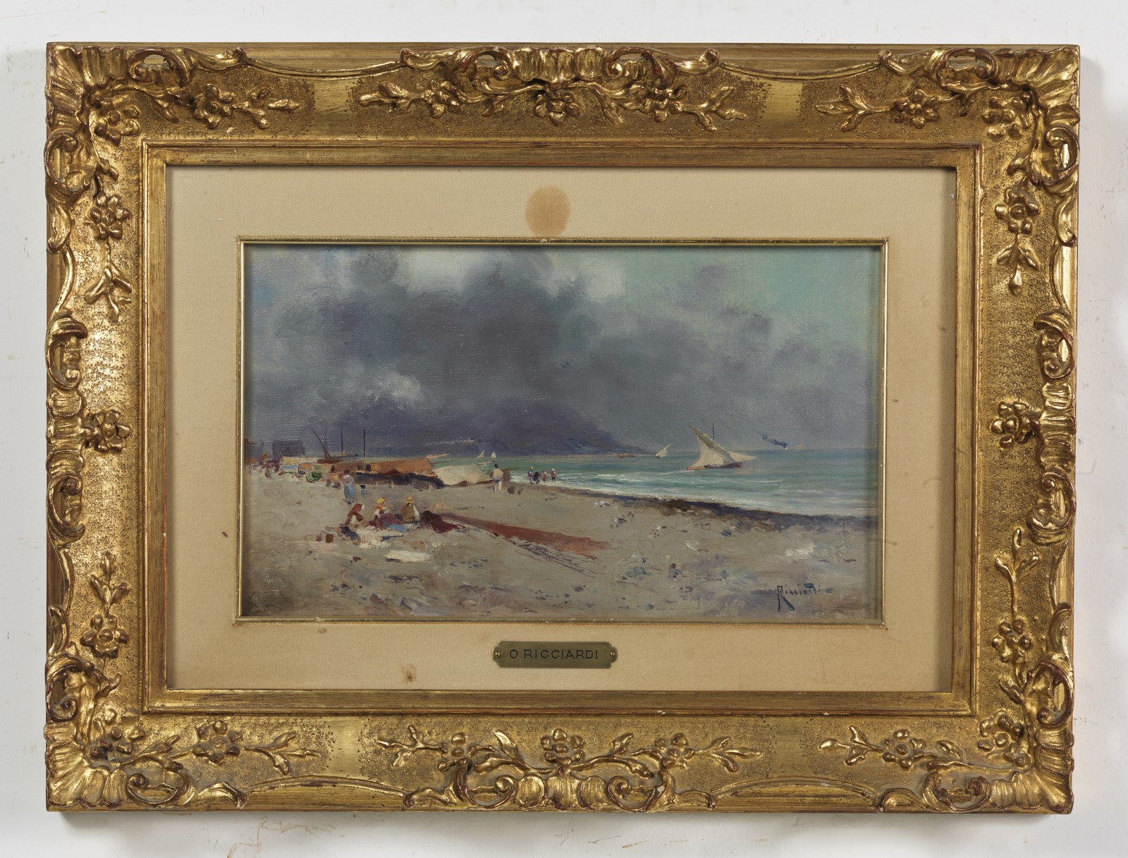 RICCIARDI OSCAR (1864 - 1935) Marina. Olio su tela . Cm 36,50 x 22,50. Firmato in basso a destra.