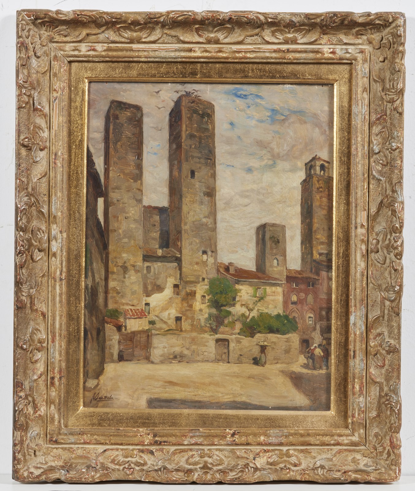 SCATTOLA FERRUCCIO (1873 - 1950) San Gimignano. . Olio su tavola. Cm 37,00 x 45,00. Firmato in basso a sinistra.