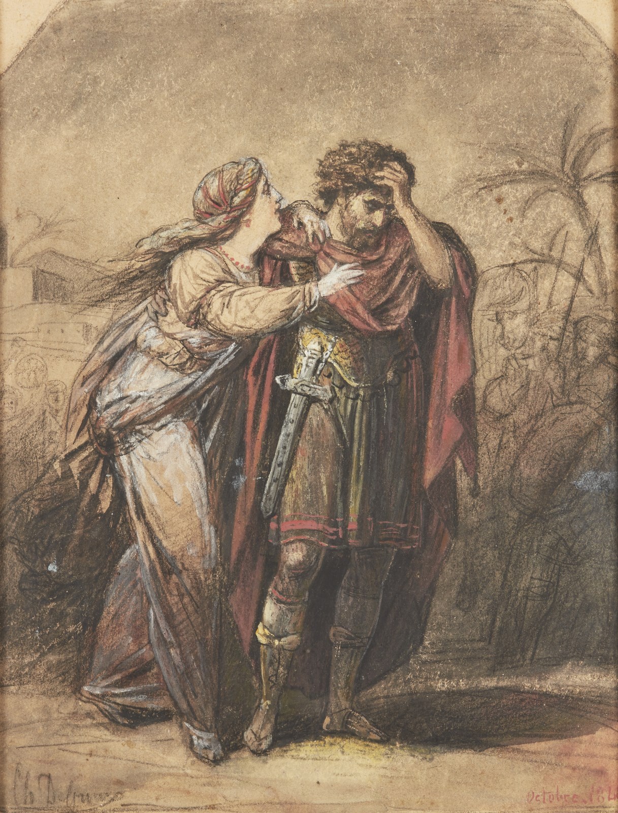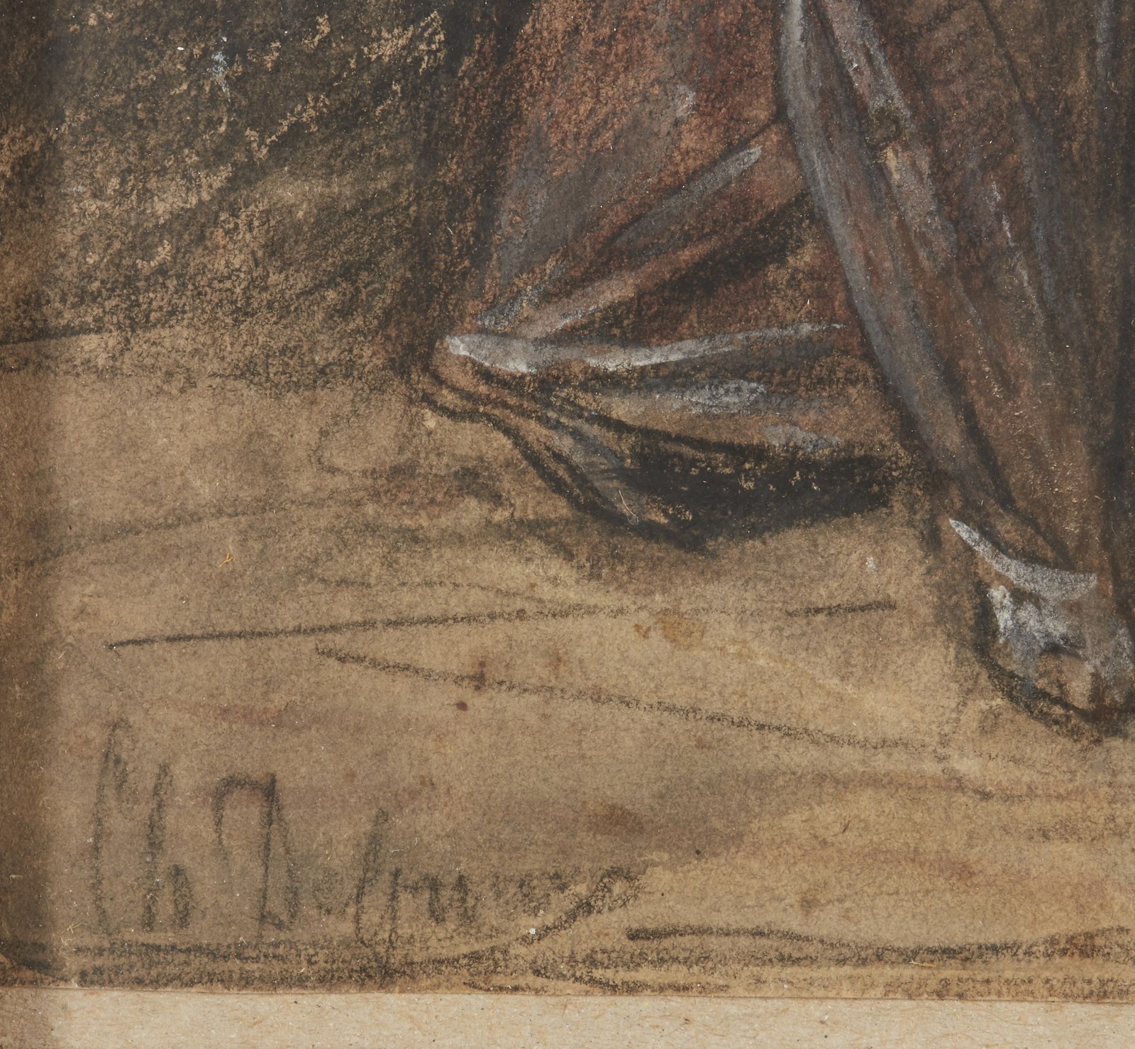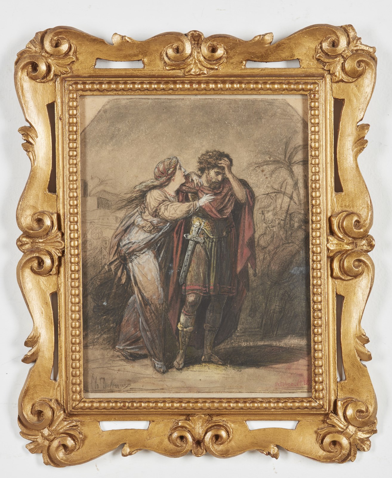 DE GROUX CHARLES (1825 - 1870) Ifigenia riconosce il fratello Oreste. Carboncino e tempera su carta. Cm 18,20 x 22,50. Firmato in basso a sinistra. Provenienza: Galleria del Caminetto, Bologna. . Cornice presente