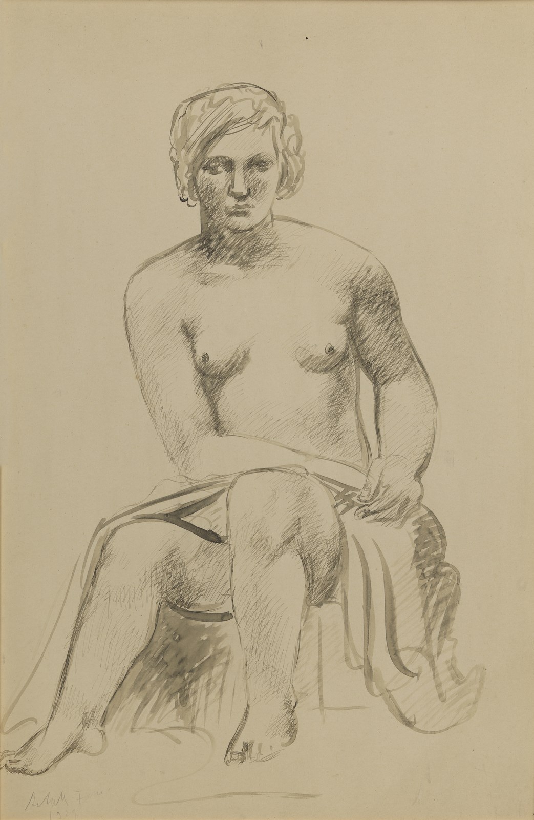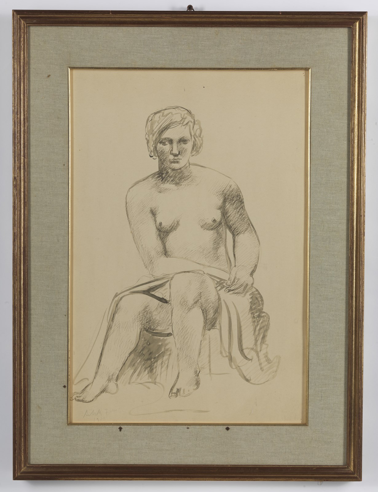 FUNI ACHILLE (1890 - 1972) Ritratto di donna. . China e matita su carta. Cm 37,00 x 55,00. Firmato e datato 1929 in basso a sinistra. . Cornice presente