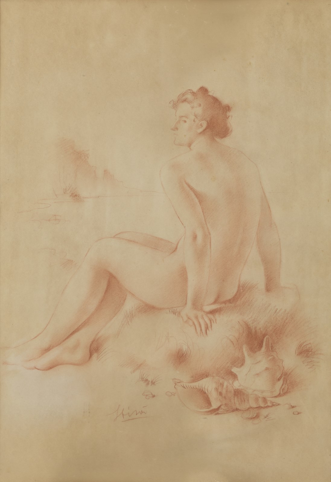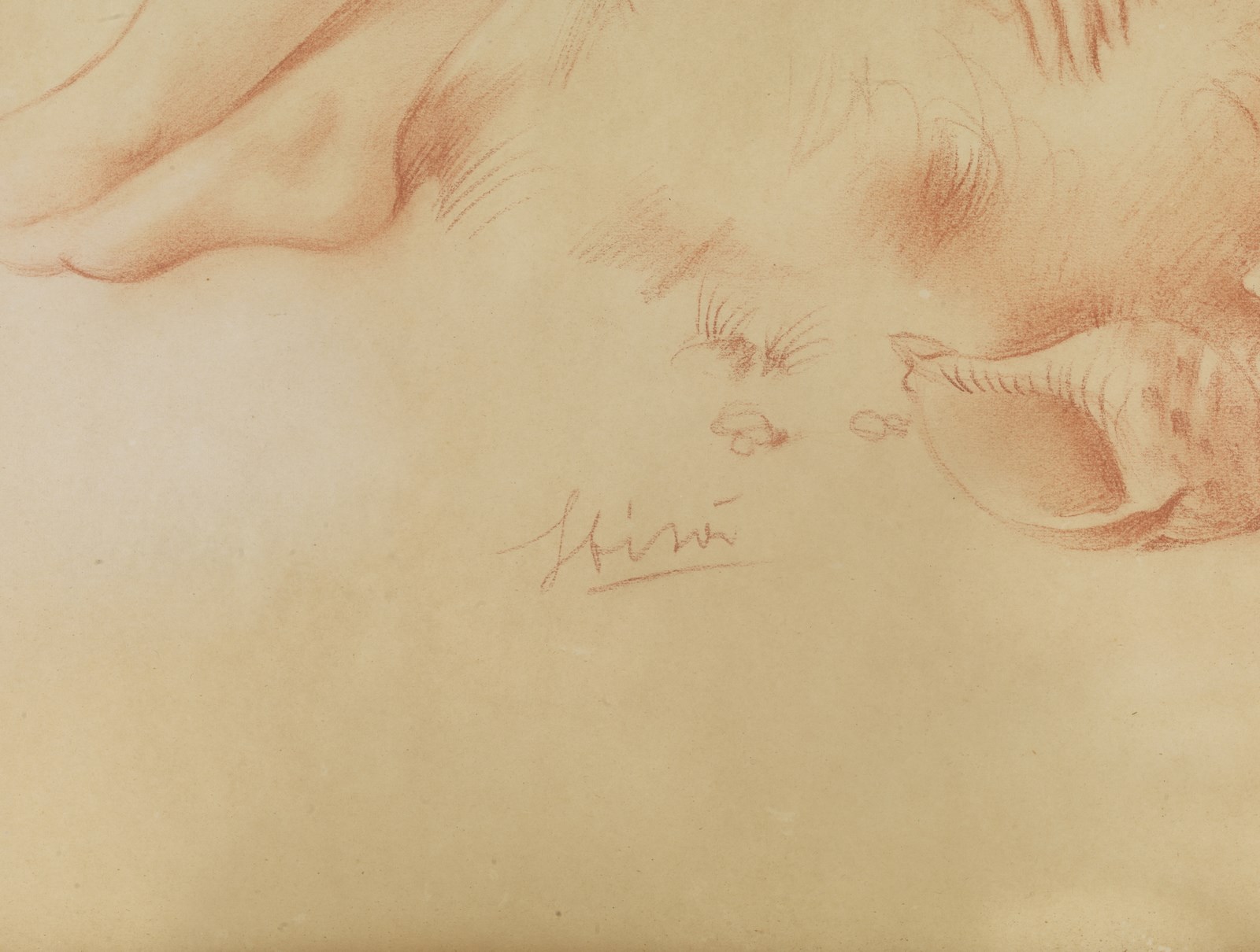 SBISÀ CARLO (1899 - 1964) Nudo di donna. Sanguigna su carta . Cm 50,00 x 70,00. Firmato in basso a sinistra. . Cornice presente