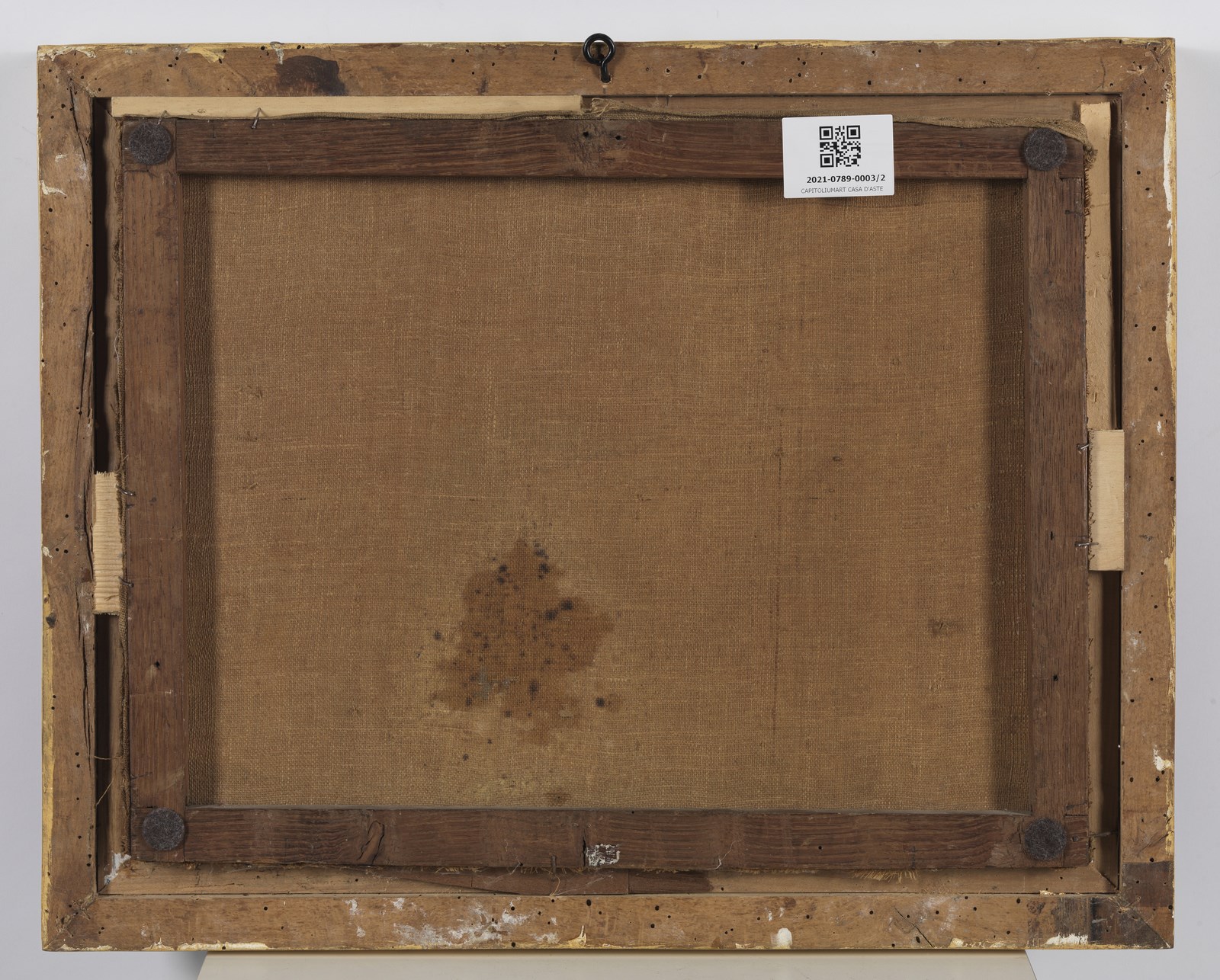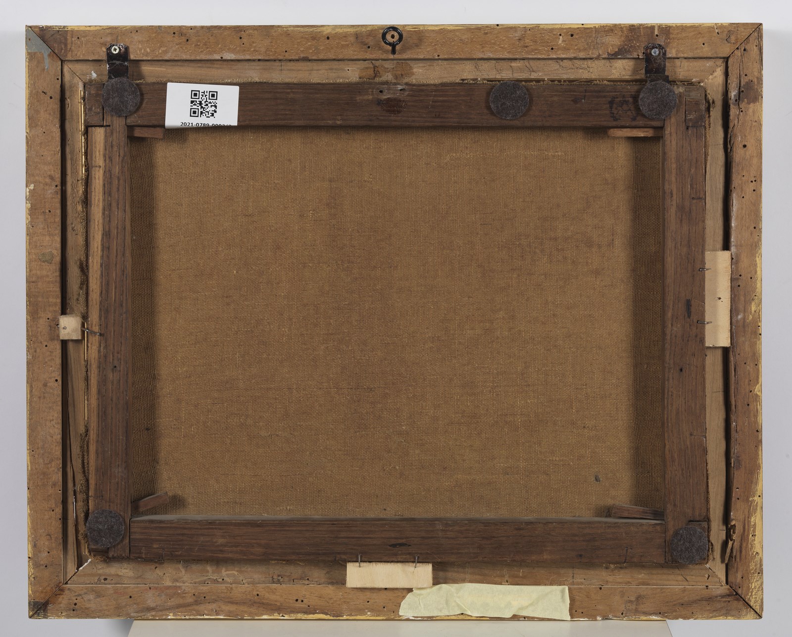 ARTISTA DEL XIX SECOLO Coppia di dipinti raffiguranti la Basilica di Santa Maria in Domnica con la fontana della Navicella e Ponte Milvio con l'ingresso del Valadier. Olio su carta applicata su tela. Cm 46,00 x 36,00. 35x45,5 cm. . Cornice presente