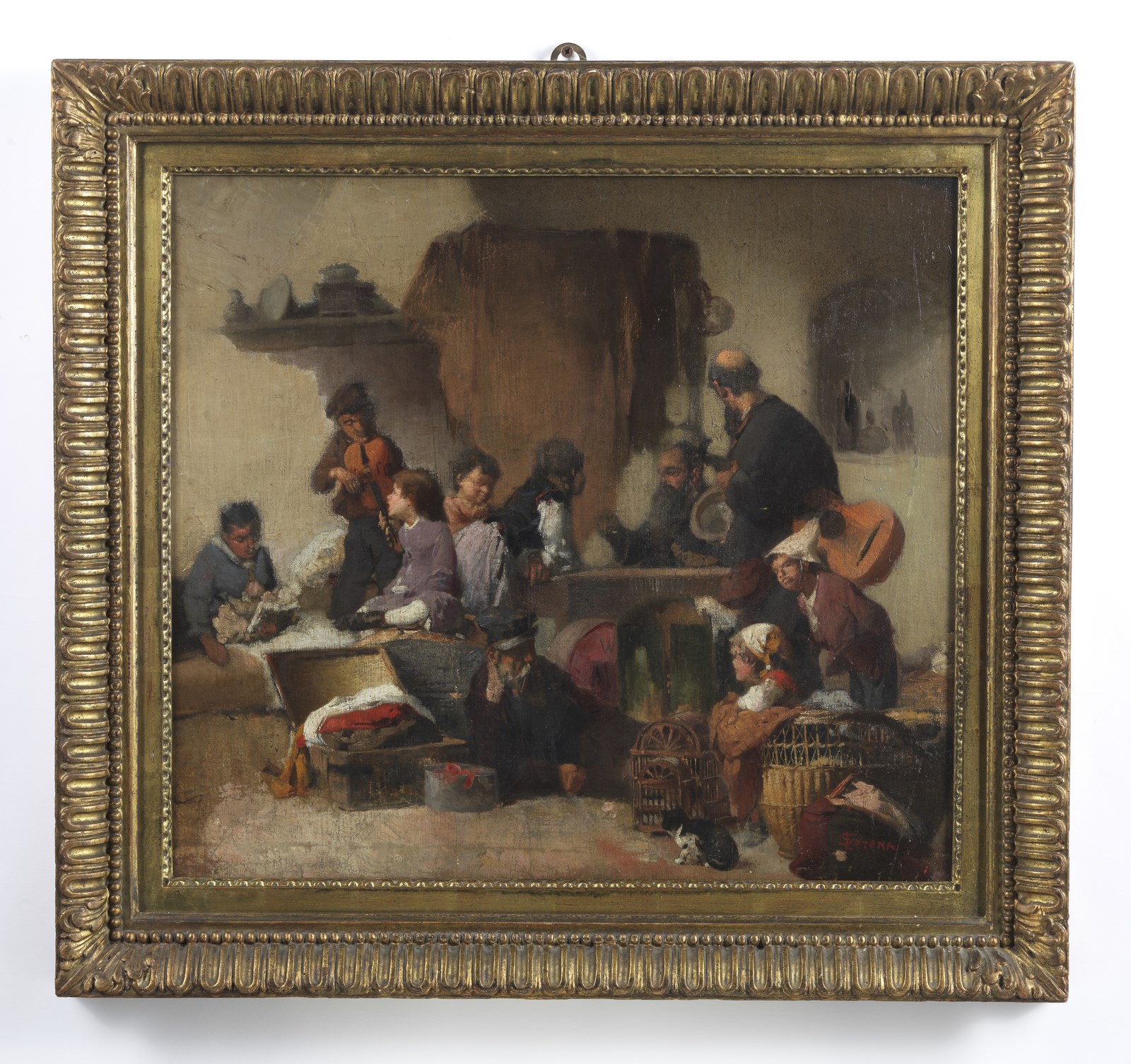 SERENA LUIGI (1855 - 1911) Interno di osteria con personaggi. Olio su tela . Cm 57,00 x 52,00. Firmato in basso a destra. . Cornice presente